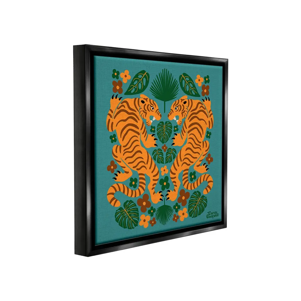 Stupell Symmetrical Tigers & Nature Framed Floater Canvas Wall Art Design By Carrie Cantwell - 25 X 25 - Black