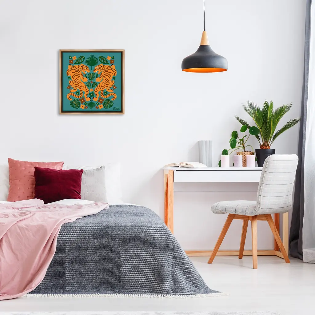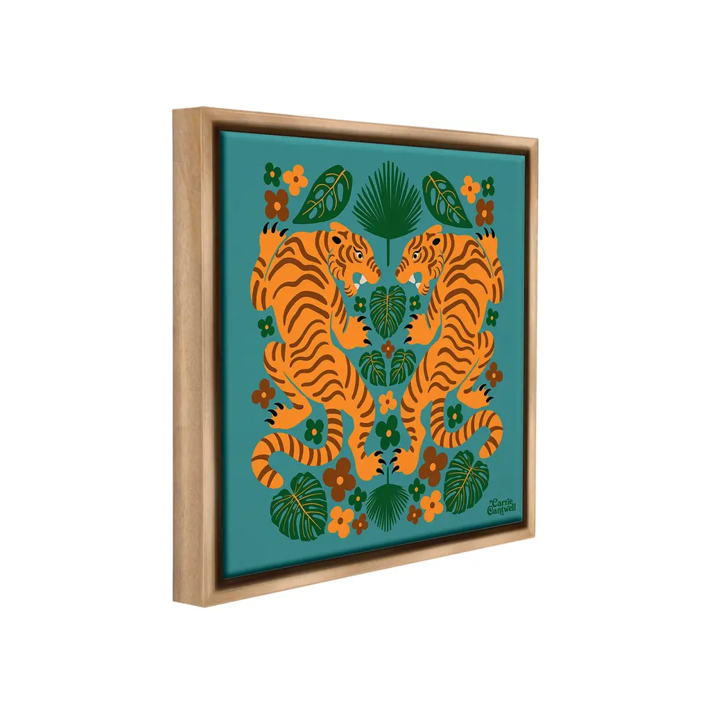 Elevate your home or office to the next level with Stupell Framed Floating Canvas Wall Art. Our premium hand-stretched canvas is mounted securely into a sturdy lightweight frame. The museum-style gap between the wrapped canvas and the box frame gives the illusion of floating artwork. Stupell Wall Art is made in the USA.Features: Dimensions: 18 x 1.7 x 18 Frame, 17 x 1.5 x 17 Canvas ArtFloating Frame Canvas Products are available in sizes 18"x18" and 25"x25". All Floating Frame Canvas Products have a 1.7" Depth.Wall Art is Ready to Hang with Hardware Free Hanging. No Installation required. For Easy Set Up Lean or Layer Artwork on Shelf or Against Wall. Artwork is Permently Fixed into the Frame.Our elevated 1.7" Thick Floating Frame is the perfect complement to our canvas style Wall Art. We use only the highest quality inks in house with industry leading printing solutions. Canvas is hand stretched over a durable wood foundation and then mounted securly into a Modern Box Frame. Made in the USA.Artwork Relates To: Pattern, Floral, Animal, Mammal, Tiger, Wildlife, Plant, Leaf, Nature, Flower, PatternDesign by Carrie Cantwell