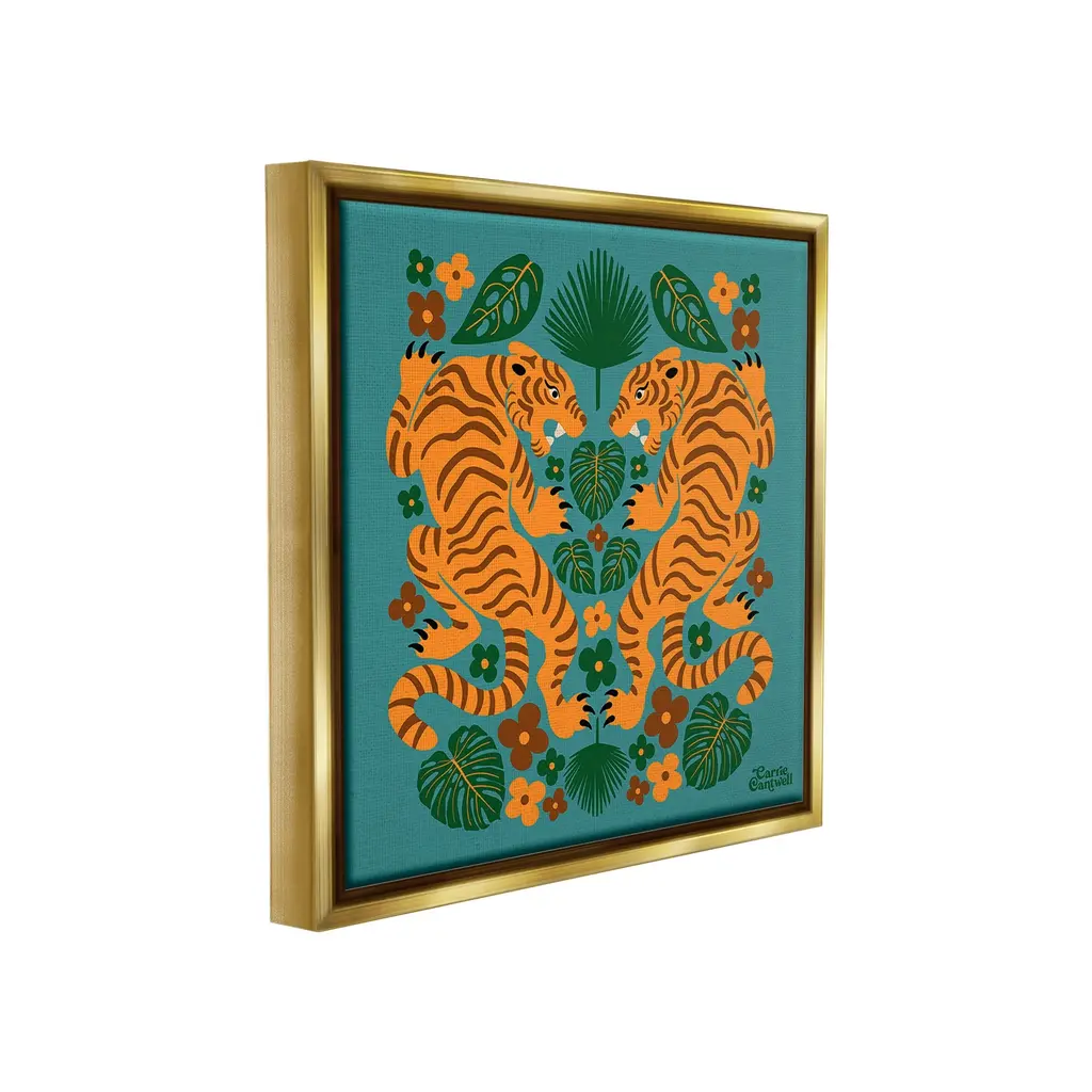 Stupell Symmetrical Tigers & Nature Framed Floater Canvas Wall Art Design By Carrie Cantwell - 25 X 25 - Gold