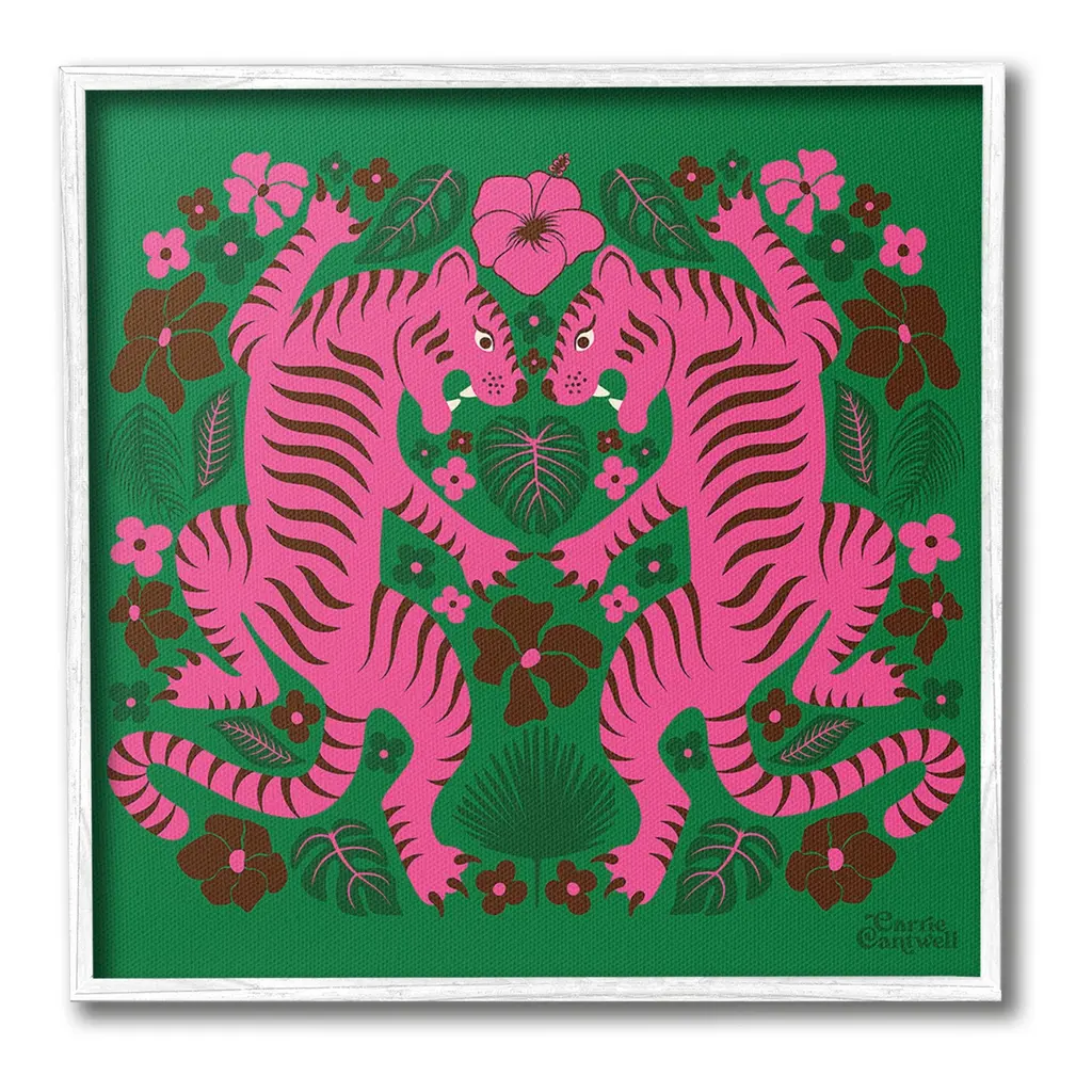 Stupell Symmetrical Tigers & Nature Framed Giclee Art Design By Carrie Cantwell - 12 X 12 - White