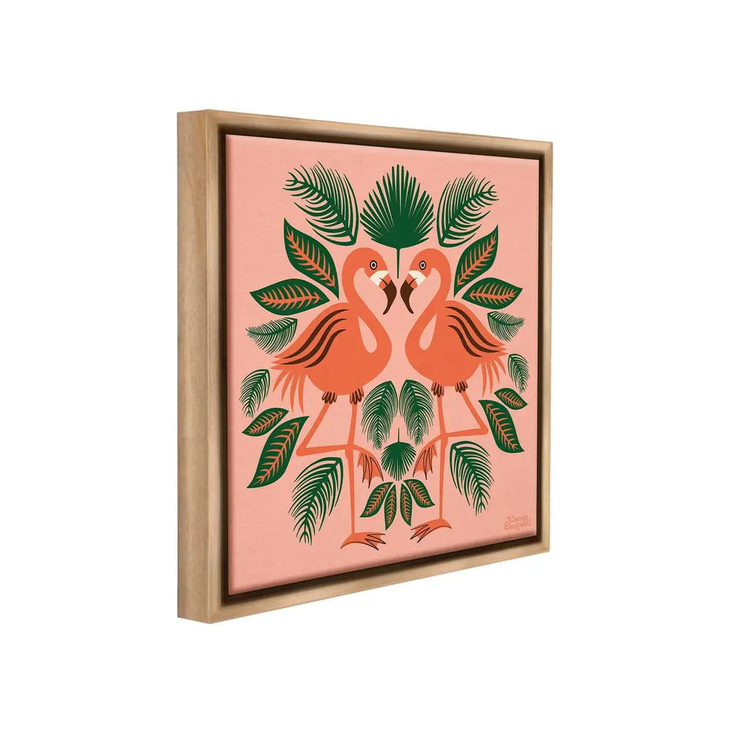 Elevate your home or office to the next level with Stupell Framed Floating Canvas Wall Art. Our premium hand-stretched canvas is mounted securely into a sturdy lightweight frame. The museum-style gap between the wrapped canvas and the box frame gives the illusion of floating artwork. Stupell Wall Art is made in the USA.Features: Dimensions: 18 x 1.7 x 18 Frame, 17 x 1.5 x 17 Canvas ArtFloating Frame Canvas Products are available in sizes 18"x18" and 25"x25". All Floating Frame Canvas Products have a 1.7" Depth.Wall Art is Ready to Hang with Hardware Free Hanging. No Installation required. For Easy Set Up Lean or Layer Artwork on Shelf or Against Wall. Artwork is Permently Fixed into the Frame.Our elevated 1.7" Thick Floating Frame is the perfect complement to our canvas style Wall Art. We use only the highest quality inks in house with industry leading printing solutions. Canvas is hand stretched over a durable wood foundation and then mounted securly into a Modern Box Frame. Made in the USA.Artwork Relates To: Animal, Bird, Flamingo, Beak, Plant, Leaf, Tropical, Botanical, ModernDesign by Carrie Cantwell