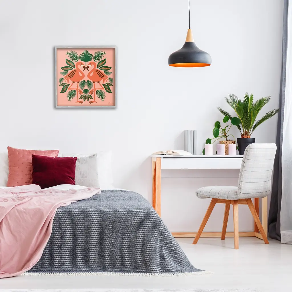 Stupell Symmetrical Tropical Flamingos Framed Giclee Art Design By Carrie Cantwell - 24 X 24 - Grey