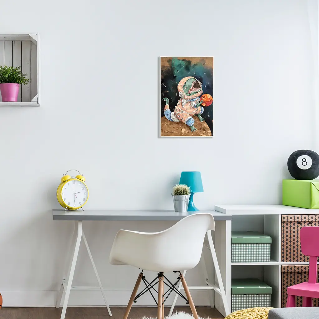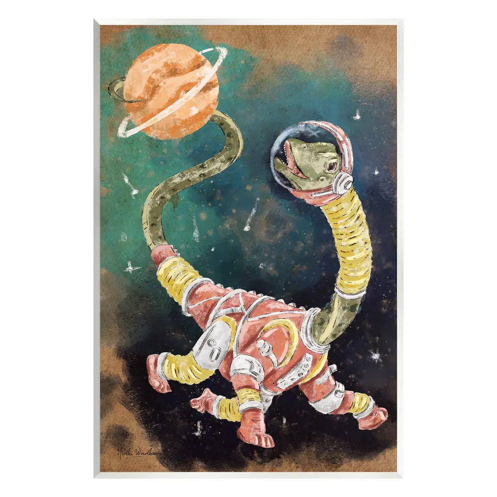 Our wall plaques start as high-quality lithograph prints mounted on durable 0.5-inch thick MDF wood. Each piece is hand finished and comes with a fresh layer of white foil on the sides to give it a crisp, clean look. Plaques arrive ready to hang without installation and come with removable plastic corners to keep them from damage in transit. Stupell Wall Art is made in the USA.Features: Dimensions: 10 x 0.5 x 15 InchesWall Plaque Sizes Include Standard: 10 x 0.5 x 15 Oversized: 13 x 0.5 x 19Wall Art is Ready to Hang with Hardware Free Hanging. No installation required. For Easy Set Up Lean or Layer Artwork on Shelf or Against Wall.All of our wall plaques start off as high quality lithograph prints that are then mounted on durable 0.5 inch thick MDF wood. Each piece is hand finished and comes with a fresh layer of foil on the sides to give it a crisp clean look. Made In USA.Artwork Relates To: Painting, Dinosaur, Planet, Outer Space, Nebula, Stars, ModernDesign by Nidhi Wadhwa