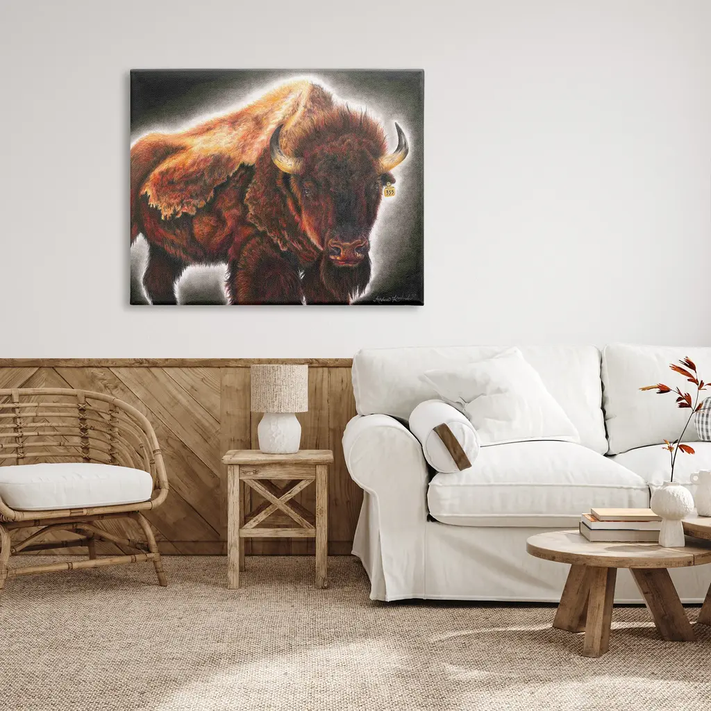 Stupell Tagged Bison Cattle Rustic Southwestern Animal Big Horns Canvas Wall Art - Orange - 36 X 48