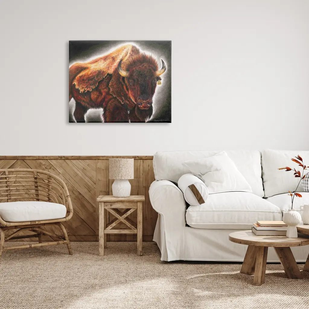 Stupell Tagged Bison Cattle Rustic Southwestern Animal Big Horns Canvas Wall Art - Orange - 40 X 30