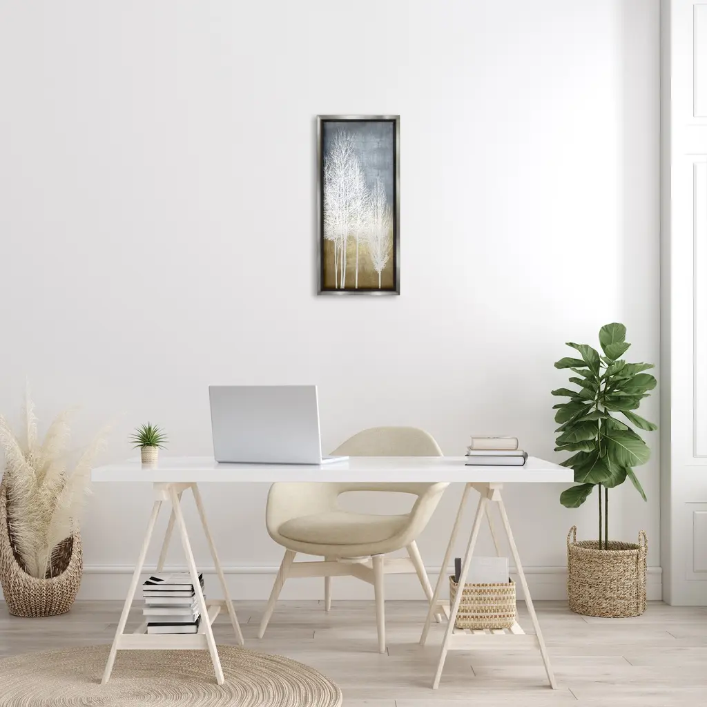 Stupell Tall Bare White Trees Nature Framed Floater Canvas Wall Art Design By Kate Bennett - 11 X 25 - Grey