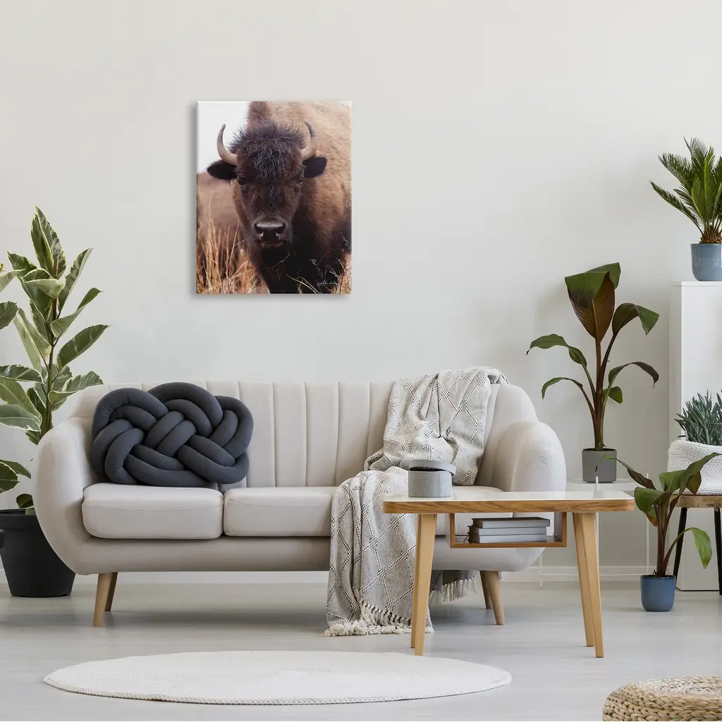 Stupell Tall Grass Bison Portrait Country Cattle Autumn Photography Canvas Wall Art - Brown - 24 X 30