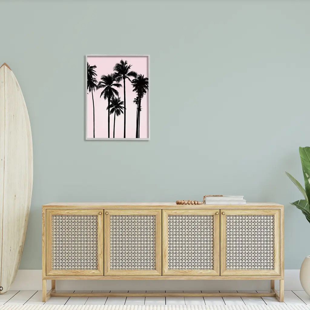 Stupell Tall Palm Tree Silhouettes Soft Tropical Pink Sky Framed Wall Art - 24 X 30 - Grey