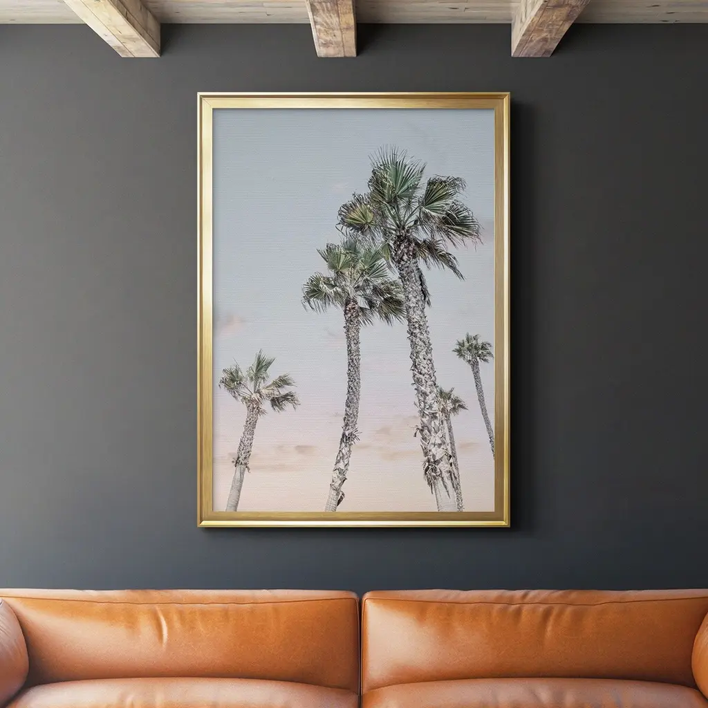 Stupell Tall Palm Tree Silhouettes Soft Tropical Pink Sky Framed Wall Art - 24 X 30 - White