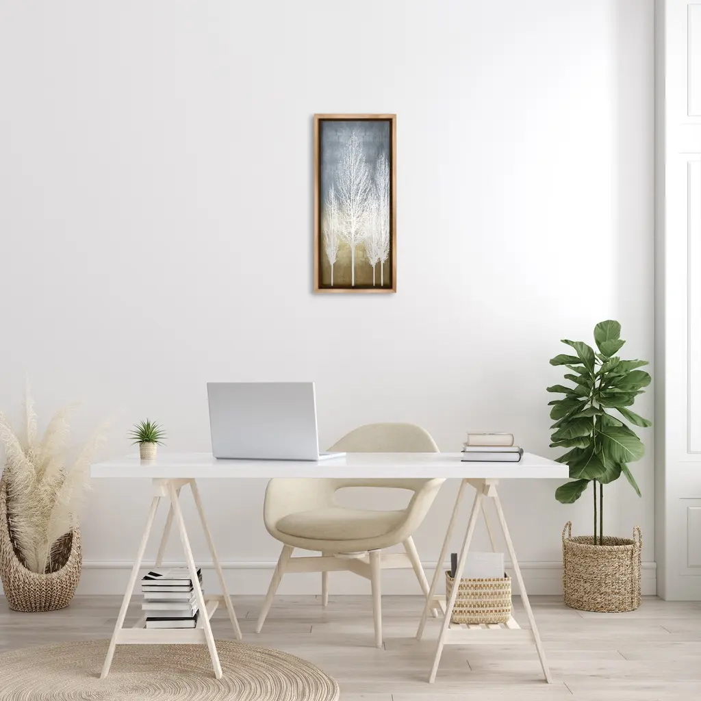 Elevate your home or office to the next level with Stupell Framed Floating Canvas Wall Art. Our premium hand-stretched canvas is mounted securely into a sturdy lightweight frame. The museum-style gap between the wrapped canvas and the box frame gives the illusion of floating artwork. Stupell Wall Art is made in the USA.Features: Dimensions: 11 x 1.7 x 25 Frame, 10 x 1.5 x 24 Canvas ArtFloating Frame Canvas Products are available in sizes 11"x25" and 14"x31". All Floating Frame Canvas Products have a 1.7" Depth.Wall Art is Ready to Hang with Hardware Free Hanging. No Installation required. For Easy Set Up Lean or Layer Artwork on Shelf or Against Wall. Artwork is Permently Fixed into the Frame.Our elevated 1.7" Thick Floating Frame is the perfect complement to our canvas style Wall Art. We use only the highest quality inks in house with industry leading printing solutions. Canvas is hand stretched over a durable wood foundation and then mounted securly into a Modern Box Frame. Made in the USA.Artwork Relates To: Abstract, Landscape, Nature, Trees, SilhouetteDesign by Kate Bennett
