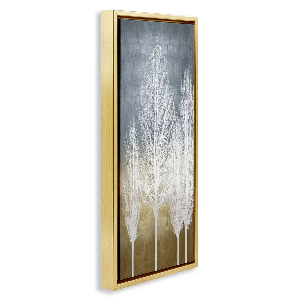 Stupell Tall Tree Silhouettes Abstraction Framed Floater Canvas Wall Art Design By Kate Bennett - 11 X 25 - Gold