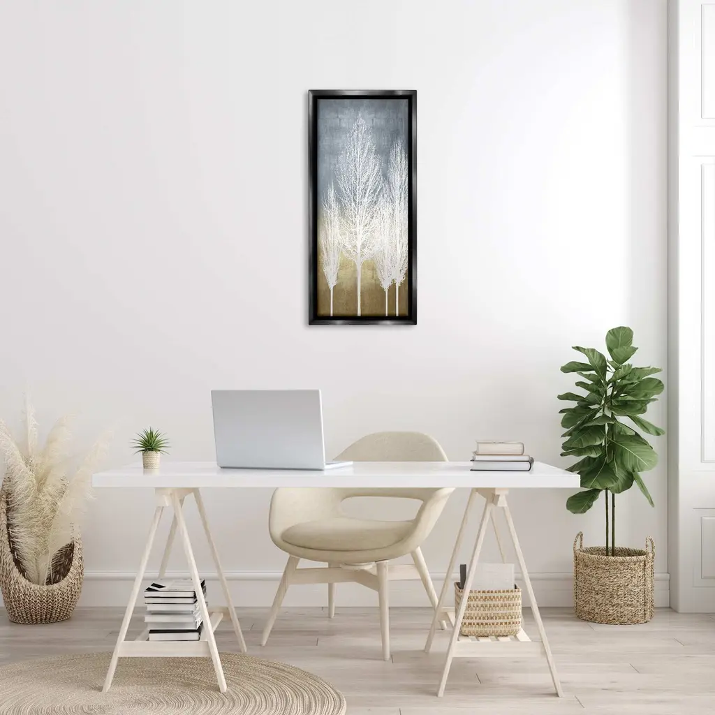 Elevate your home or office to the next level with Stupell Framed Floating Canvas Wall Art. Our premium hand-stretched canvas is mounted securely into a sturdy lightweight frame. The museum-style gap between the wrapped canvas and the box frame gives the illusion of floating artwork. Stupell Wall Art is made in the USA.Features: Dimensions: 11 x 1.7 x 25 Frame, 10 x 1.5 x 24 Canvas ArtFloating Frame Canvas Products are available in sizes 11"x25" and 14"x31". All Floating Frame Canvas Products have a 1.7" Depth.Wall Art is Ready to Hang with Hardware Free Hanging. No Installation required. For Easy Set Up Lean or Layer Artwork on Shelf or Against Wall. Artwork is Permently Fixed into the Frame.Our elevated 1.7" Thick Floating Frame is the perfect complement to our canvas style Wall Art. We use only the highest quality inks in house with industry leading printing solutions. Canvas is hand stretched over a durable wood foundation and then mounted securly into a Modern Box Frame. Made in the USA.Artwork Relates To: Abstract, Landscape, Nature, Trees, SilhouetteDesign by Kate Bennett