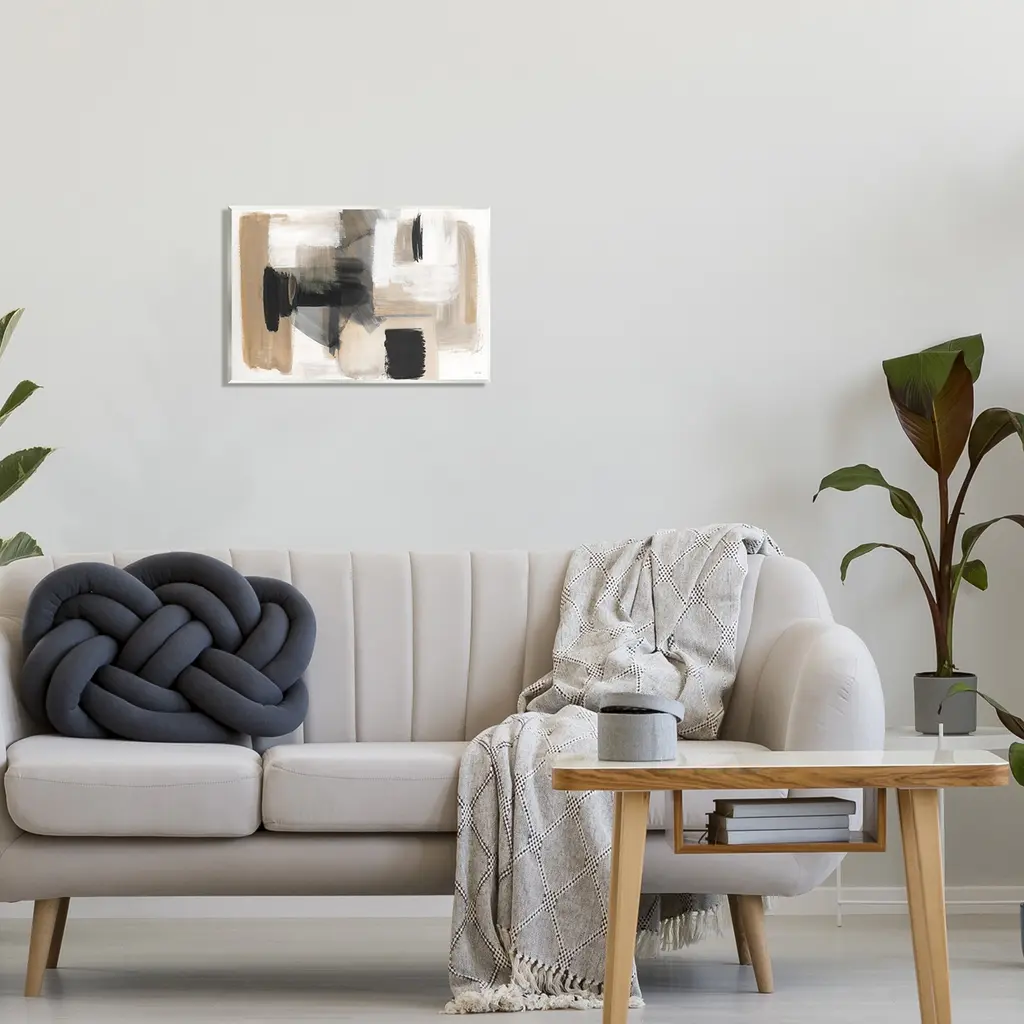 Our wall plaques start as high-quality lithograph prints mounted on durable 0.5-inch thick MDF wood. Each piece is hand finished and comes with a fresh layer of white foil on the sides to give it a crisp, clean look. Plaques arrive ready to hang without installation and come with removable plastic corners to keep them from damage in transit. Stupell Industries Wall Art is made in the USA.Features: Dimensions: 15 x 0.5 x 10 InchesWall Plaque Sizes Include Standard: 15 x 0.5 x 10 Oversized: 19 x 0.5 x 13Wall Art is Ready to Hang with Hardware Free Hanging. No installation required. For Easy Set Up Lean or Layer Artwork on Shelf or Against Wall.All of our wall plaques start off as high quality lithograph prints that are then mounted on durable 0.5 inch thick MDF wood. Each piece is hand finished and comes with a fresh layer of foil on the sides to give it a crisp clean look. Made In USA.Artwork Relates To: Modern, Black, Abstract, BeigeDesign by Stella Chang