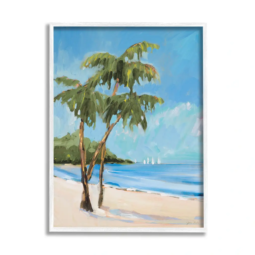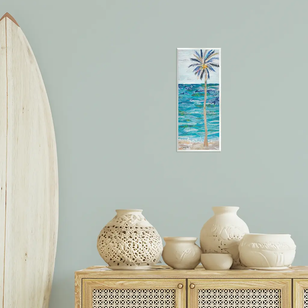 Our wall plaques start as high-quality lithograph prints mounted on durable 0.5-inch thick MDF wood. Each piece is hand finished and comes with a fresh layer of white foil on the sides to give it a crisp, clean look. Plaques arrive ready to hang without installation and come with removable plastic corners to keep them from damage in transit. Stupell Wall Art is made in the USA.Features: Dimensions: 7 x 0.5 x 17 InchesWall Art is Ready to Hang with Hardware Free Hanging. No installation required. For Easy Set Up Lean or Layer Artwork on Shelf or Against Wall.All of our wall plaques start off as high quality lithograph prints that are then mounted on durable 0.5 inch thick MDF wood. Each piece is hand finished and comes with a fresh layer of foil on the sides to give it a crisp clean look. Made In USA.Artwork Relates To: Palm Tree, Sea, Water, Summer, Beach, Coast, Shoreline, TropicalDesign by Jennifer Peck
