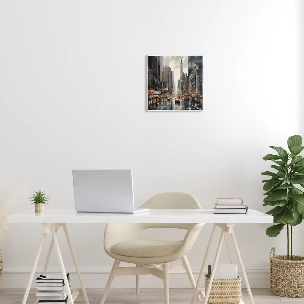 Our wall plaques start as high-quality lithograph prints mounted on durable 0.5-inch thick MDF wood. Each piece is hand finished and comes with a fresh layer of white foil on the sides to give it a crisp, clean look. Plaques arrive ready to hang without installation and come with removable plastic corners to keep them from damage in transit. Wall Art is made in the USA.Features: Dimensions: 12 x 0.5 x 12 InchesWall Art is Ready to Hang with Hardware Free Hanging. No installation required. For Easy Set Up Lean or Layer Artwork on Shelf or Against Wall.All of our wall plaques start off as high quality lithograph prints that are then mounted on durable 0.5 inch thick MDF wood. Each piece is hand finished and comes with a fresh layer of foil on the sides to give it a crisp clean look. Made In USA.Artwork Relates To: City, Metropolis, Urban, Car, Transportation, Vehicle, Person, Architecture, Building, Cityscape, Road, Street, TaxiDesign by RB
