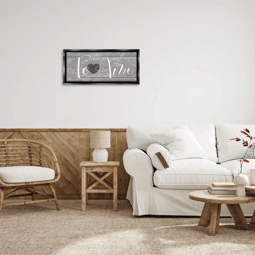 Elevate your home or office to the next level with Stupell Framed Floating Canvas Wall Art. Our premium hand-stretched canvas is mounted securely into a sturdy lightweight frame. The museum-style gap between the wrapped canvas and the box frame gives the illusion of floating artwork. Stupell Wall Art is made in the USA.Features: Dimensions: 25 x 1.7 x 11 Frame, 24 x 1.5 x 10 Canvas ArtFloating Frame Canvas Products are available in sizes 25"x11" and 31"x14". All Floating Frame Canvas Products have a 1.7" Depth.Wall Art is Ready to Hang with Hardware Free Hanging. No Installation required. For Easy Set Up Lean or Layer Artwork on Shelf or Against Wall. Artwork is Permently Fixed into the Frame.Our elevated 1.7" Thick Floating Frame is the perfect complement to our canvas style Wall Art. We use only the highest quality inks in house with industry leading printing solutions. Canvas is hand stretched over a durable wood foundation and then mounted securly into a Modern Box Frame. Made in the USA.Artwork Relates To: Phrase, Rustic, Love, Country, Te Amo, World Cultures, FarmhouseDesign by Daphne Polselli