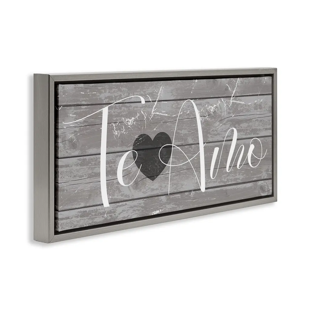Stupell Te Amo Romantic Rustic Framed Floater Canvas Wall Art Design By Daphne Polselli - 25 X 11 - Grey