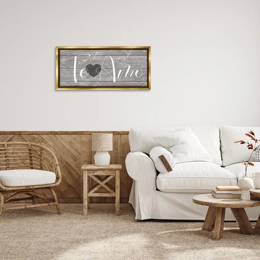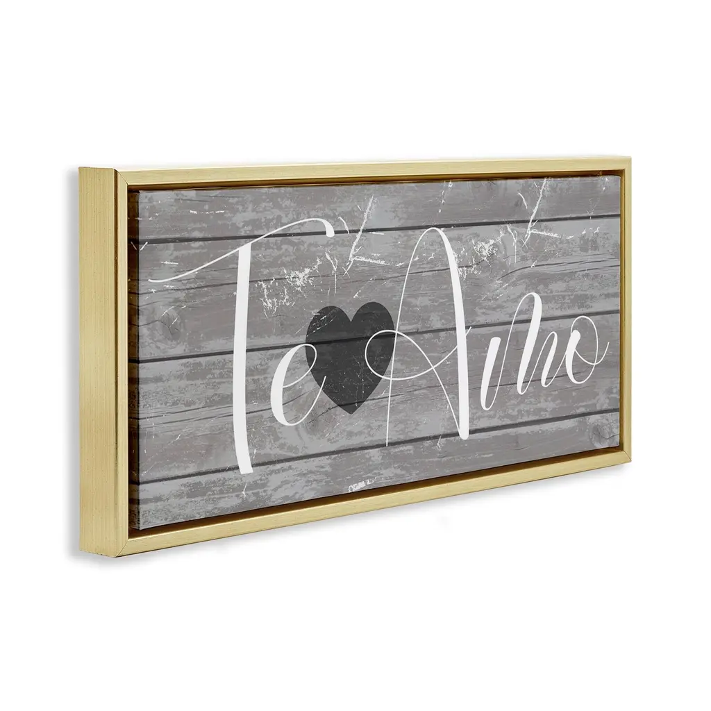 Stupell Te Amo Romantic Rustic Framed Floater Canvas Wall Art Design By Daphne Polselli - 31 X 14 - Gold