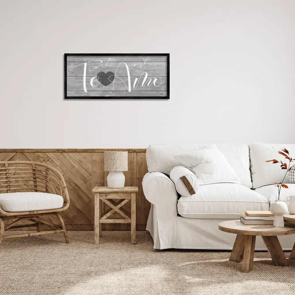 Add dimension to any room with our textured Framed Giclee Artwork. Our framed artwork is securely mounted into a 1.5-inch thick wood grain frame and ready to hang. Frames are available in three alluring styles: black, gray farmhouse and white. In addition, you should check out our oversized options if you want a statement piece. Stupell Wall Art is made in the USA.Features: Dimensions: 24 x 1.5 x 10 FramedFramed Giclee Product Sizes include 24"x10" and 30"x13". All Framed Giclee products have a 1.5" Depth.Wall Art is Ready to Hang with Hardware Free Hanging. No installation required. For Easy Set Up Lean or Layer Artwork on Shelf or Against Wall.Our giclée prints are carefully mounted on a durable MDF backing, and then perfectly finished in a 1.5 inch thick woodgrain frame. Mounted frame colors include black, gray farmhouse and white. Made In USA.Artwork Relates To: Phrase, Rustic, Love, Country, Te Amo, World Cultures, FarmhouseDesign by Daphne Polselli
