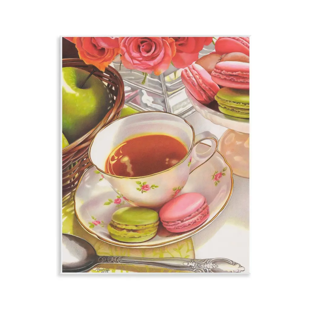 Our wall plaques start as high-quality lithograph prints mounted on durable 0.5-inch thick MDF wood. Each piece is hand finished and comes with a fresh layer of white foil on the sides to give it a crisp, clean look. Plaques arrive ready to hang without installation and come with removable plastic corners to keep them from damage in transit. Stupell Wall Art is made in the USA.Features: Dimensions: 11 x 0.5 x 14 InchesWall Art is Ready to Hang with Hardware Free Hanging. No installation required. For Easy Set Up Lean or Layer Artwork on Shelf or Against Wall.All of our wall plaques start off as high quality lithograph prints that are then mounted on durable 0.5 inch thick MDF wood. Each piece is hand finished and comes with a fresh layer of foil on the sides to give it a crisp clean look. Made In USA.Artwork Relates To: Tea, Food, Meal, Kitchen, Country, Floral, Flower, Dessert, FruitDesign by Mardell Schuster