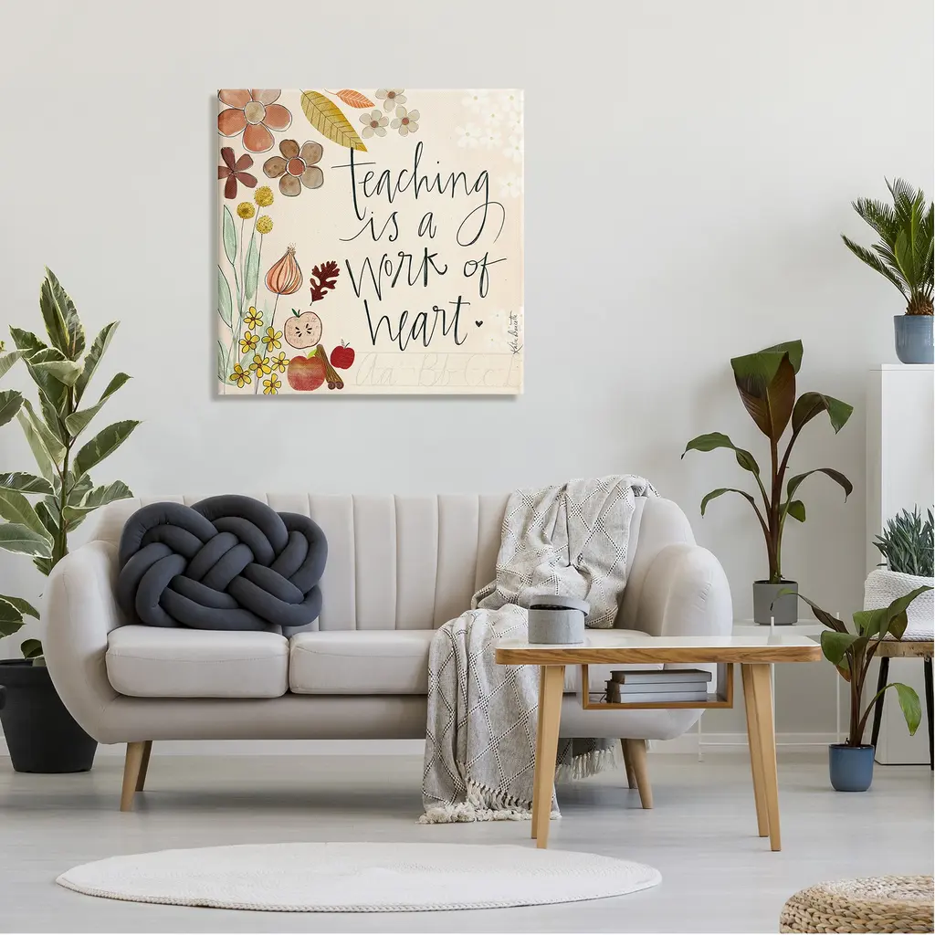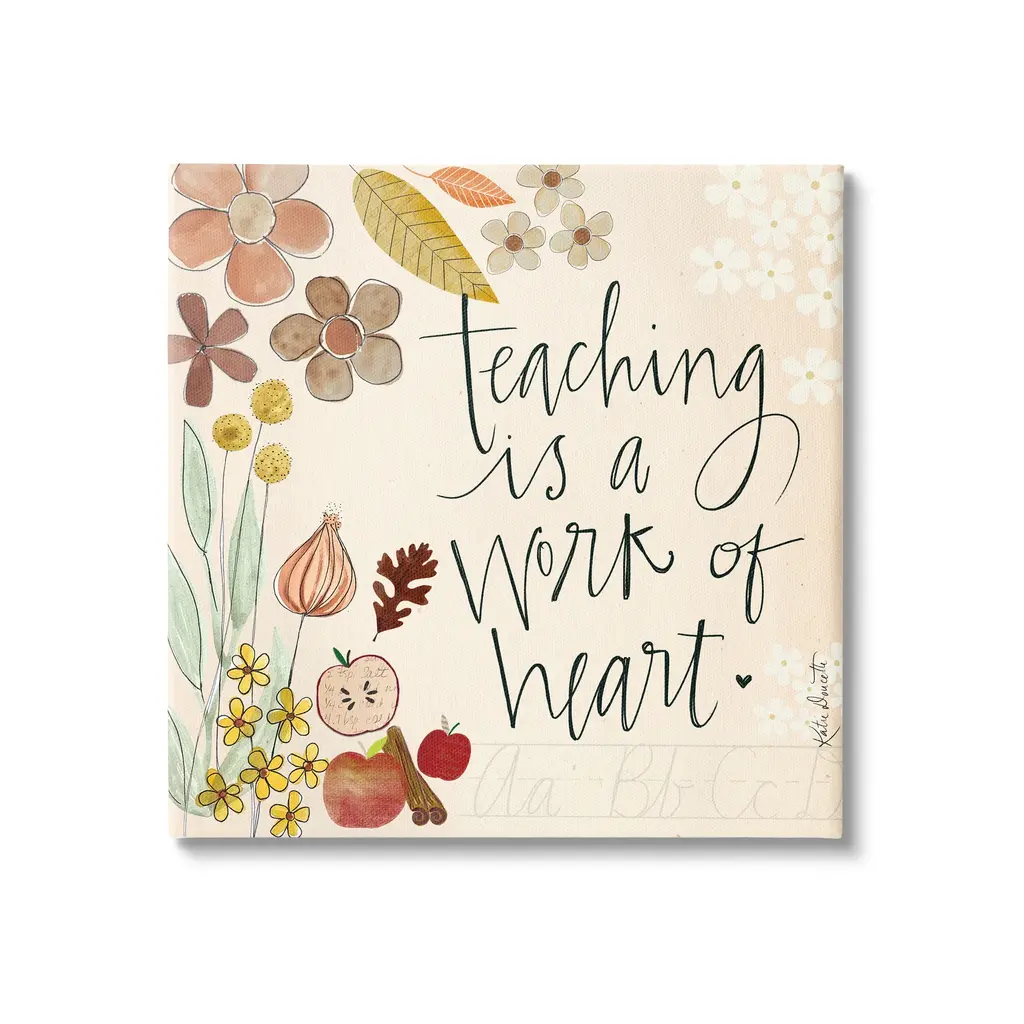 Stupell Teaching Is Work Of Heart Floral Canvas Wall Art By Katie Doucette - 30 X 30