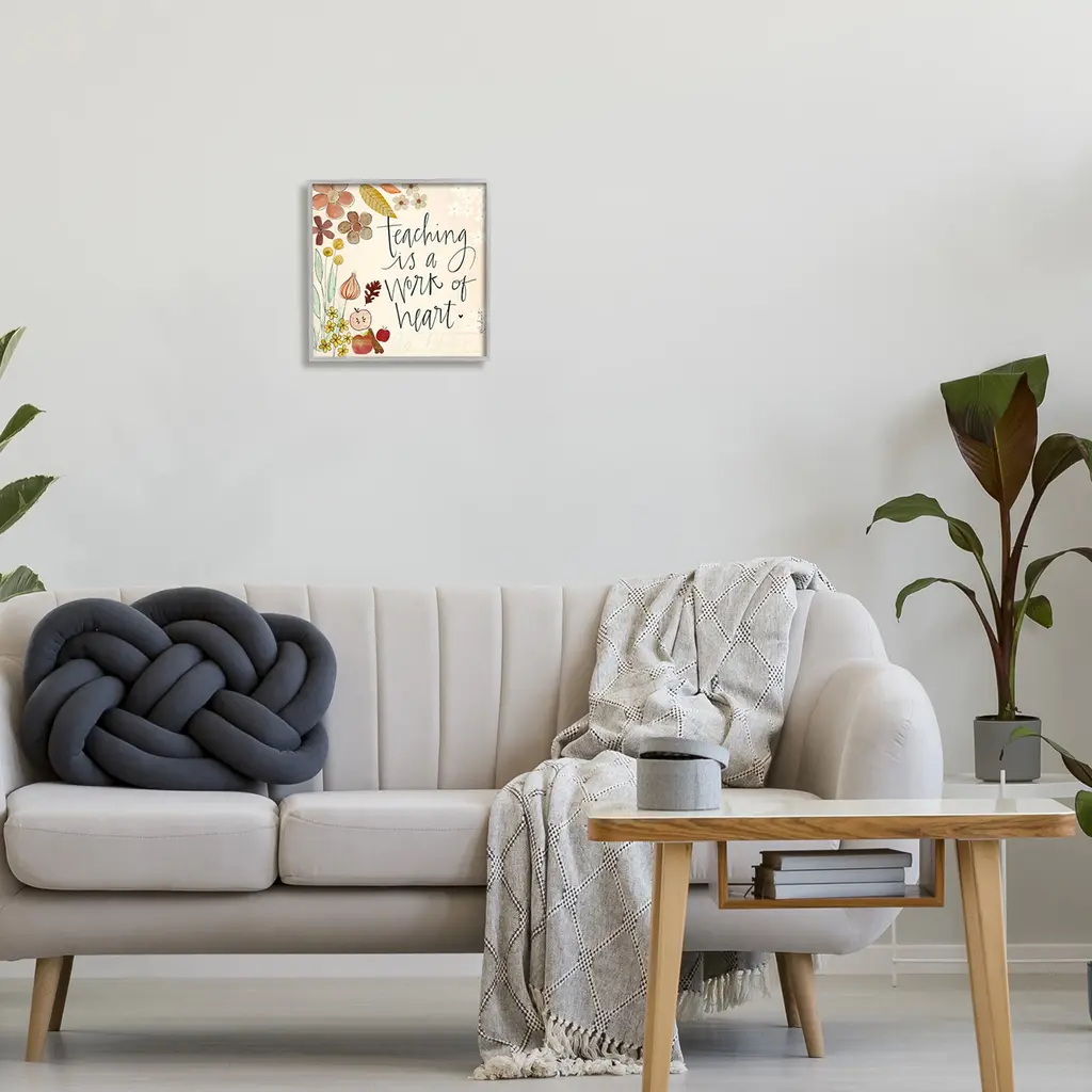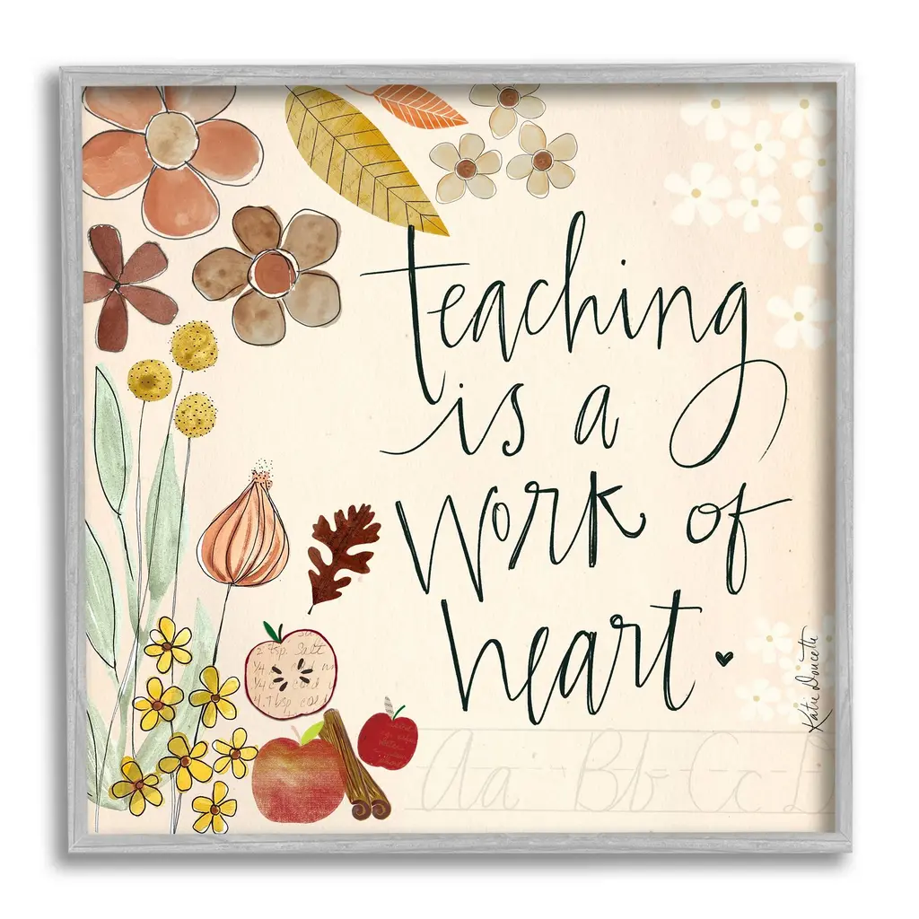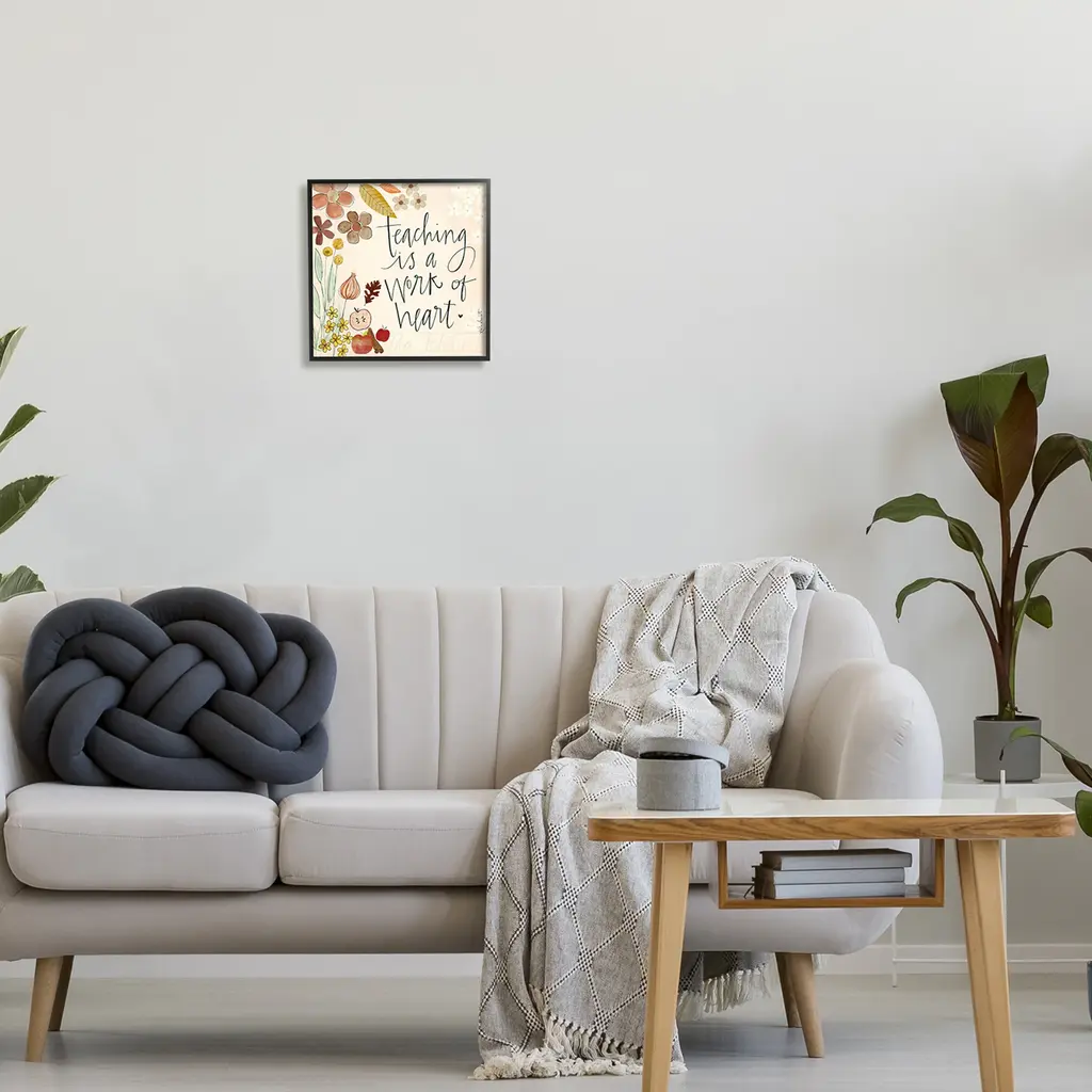 Add dimension to any room with our textured Framed Giclee Artwork. Our framed artwork is securely mounted into a 1.5-inch thick wood grain frame and ready to hang. Frames are available in three alluring styles: black, gray farmhouse and white. In addition, you should check out our oversized options if you want a statement piece. Stupell Wall Art is made in the USA.Features: Dimensions: 12 x 1.5 x 12 FramedFramed Giclee Sizes Include Standard: 12 x 1.5 x 12 Large: 17 x 1.5 x 17 Oversized: 24 x 1.5 x 24Wall Art is Ready to Hang - No Installation or Hardware Needed. For Easy Set Up Lean or Layer Artwork on Shelf or Against Wall.Our giclée prints are carefully mounted on a durable MDF backing, and then perfectly finished in a 1.5 inch thick woodgrain frame. Mounted frame colors include black, gray farmhouse and white. Made In USA.Artwork Relates To: Floral, Flower, Boho, Phrase, Teaching, Classroom, Teaching Is A Work Of HeartDesign by Katie Doucette