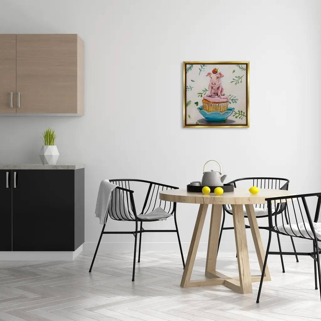 Elevate your home or office to the next level with Stupell Framed Floating Canvas Wall Art. Our premium hand-stretched canvas is mounted securely into a sturdy lightweight frame. The museum-style gap between the wrapped canvas and the box frame gives the illusion of floating artwork. Stupell Wall Art is made in the USA.Features: Dimensions: 18 x 1.7 x 18 Frame, 17 x 1.5 x 17 Canvas ArtFloating Frame Canvas Products are available in sizes 18"x18" and 25"x25". All Floating Frame Canvas Products have a 1.7" Depth.Wall Art is Ready to Hang with Hardware Free Hanging. No Installation required. For Easy Set Up Lean or Layer Artwork on Shelf or Against Wall. Artwork is Permently Fixed into the Frame.Our elevated 1.7" Thick Floating Frame is the perfect complement to our canvas style Wall Art. We use only the highest quality inks in house with industry leading printing solutions. Canvas is hand stretched over a durable wood foundation and then mounted securly into a Modern Box Frame. Made in the USA.Artwork Relates To: Animal, Pig, Cupcake, Food, Dessert, Botanical, PatternDesign by Karen Weber Fine Art