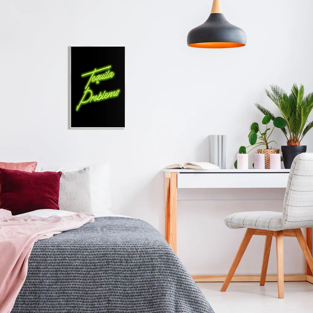 Our wall plaques start as high-quality lithograph prints mounted on durable 0.5-inch thick MDF wood. Each piece is hand finished and comes with a fresh layer of white foil on the sides to give it a crisp, clean look. Plaques arrive ready to hang without installation and come with removable plastic corners to keep them from damage in transit. Wall Art is made in the USA.Features: Dimensions: 10 x 0.5 x 15 InchesWall Plaque Sizes Include Standard: 10 x 0.5 x 15 Oversized: 13 x 0.5 x 19Wall Art is Ready to Hang with Hardware Free Hanging. No installation required. For Easy Set Up Lean or Layer Artwork on Shelf or Against Wall.All of our wall plaques start off as high quality lithograph prints that are then mounted on durable 0.5 inch thick MDF wood. Each piece is hand finished and comes with a fresh layer of foil on the sides to give it a crisp clean look. Made In USA.Artwork Relates To: Light, Neon, Green, Bold, Tequila ProblemsDesign by House of Lulu
