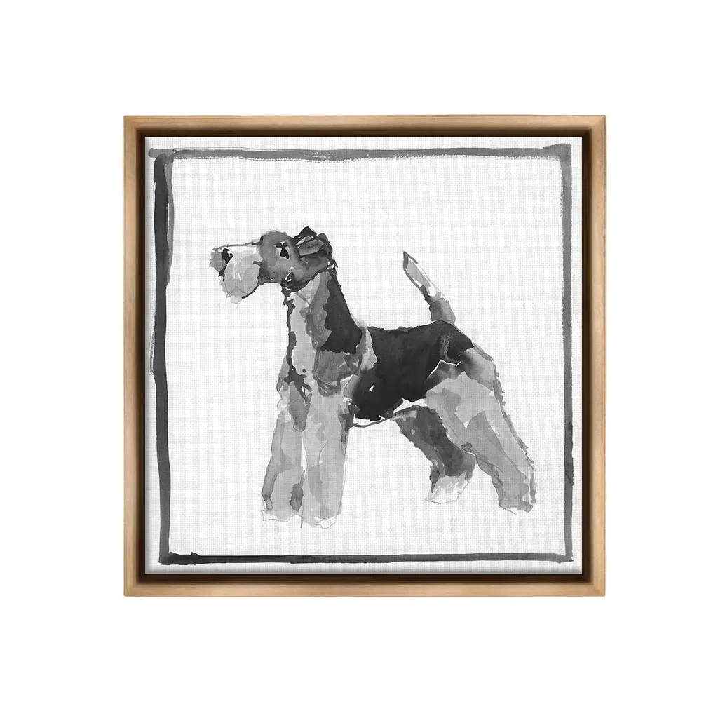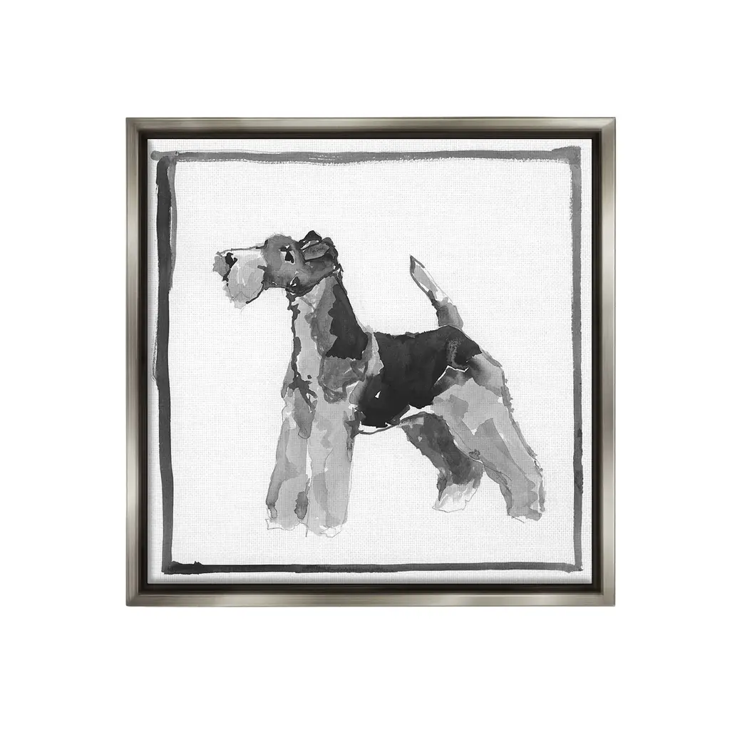 Add dimension to any room with our textured Framed Giclee Artwork. Our framed artwork is securely mounted into a 1.5-inch thick wood grain frame and ready to hang. Frames are available in three alluring styles: black, gray farmhouse and white. In addition, you should check out our oversized options if you want a statement piece. Stupell Wall Art is made in the USA.Features: Dimensions: 12 x 1.5 x 12 FramedFramed Giclee Product Sizes Include 12"x12", 17"x17", and 24"x24". Framed Giclee Products have a 1.5" Depth. Wall Art is Ready to Hang with Hardware Free Hanging. No installation required. For Easy Set Up Lean or Layer Artwork on Shelf or Against Wall.Our giclée prints are carefully mounted on a durable MDF backing, and then perfectly finished in a 1.5 inch thick woodgrain frame. Mounted frame colors include black, gray farmhouse and white. Made In USA.Artwork Relates To: Animal, Canine, Dog, Mammal, Pet, Minimal, Abstract, TerrierDesign by Cartissi