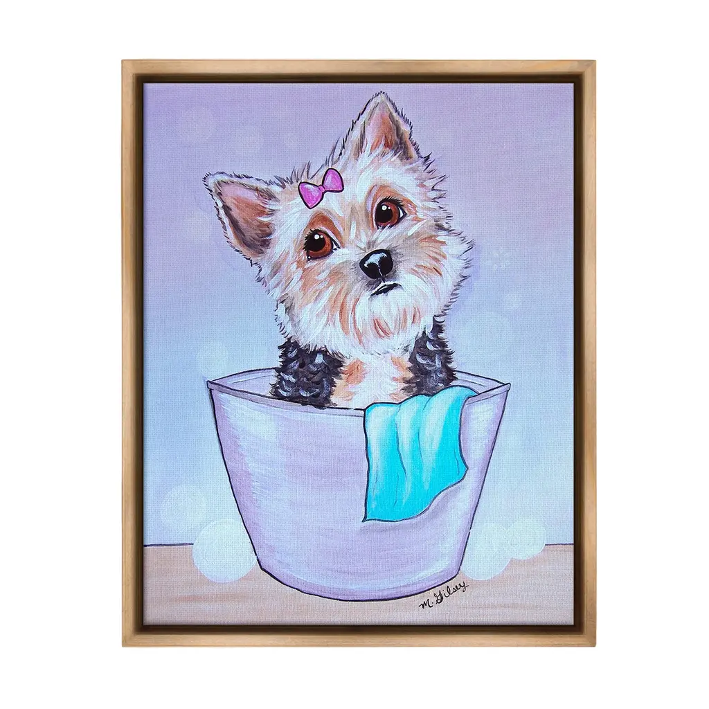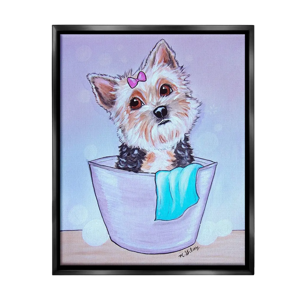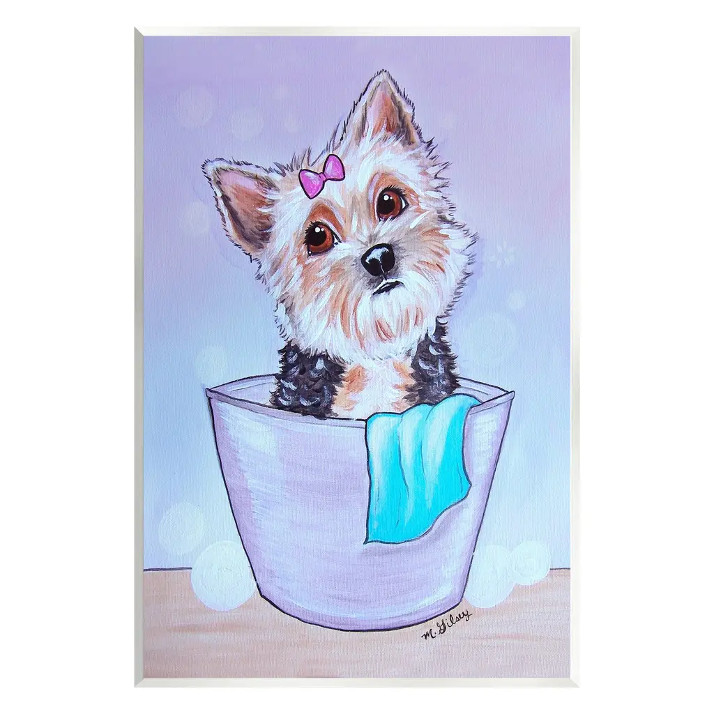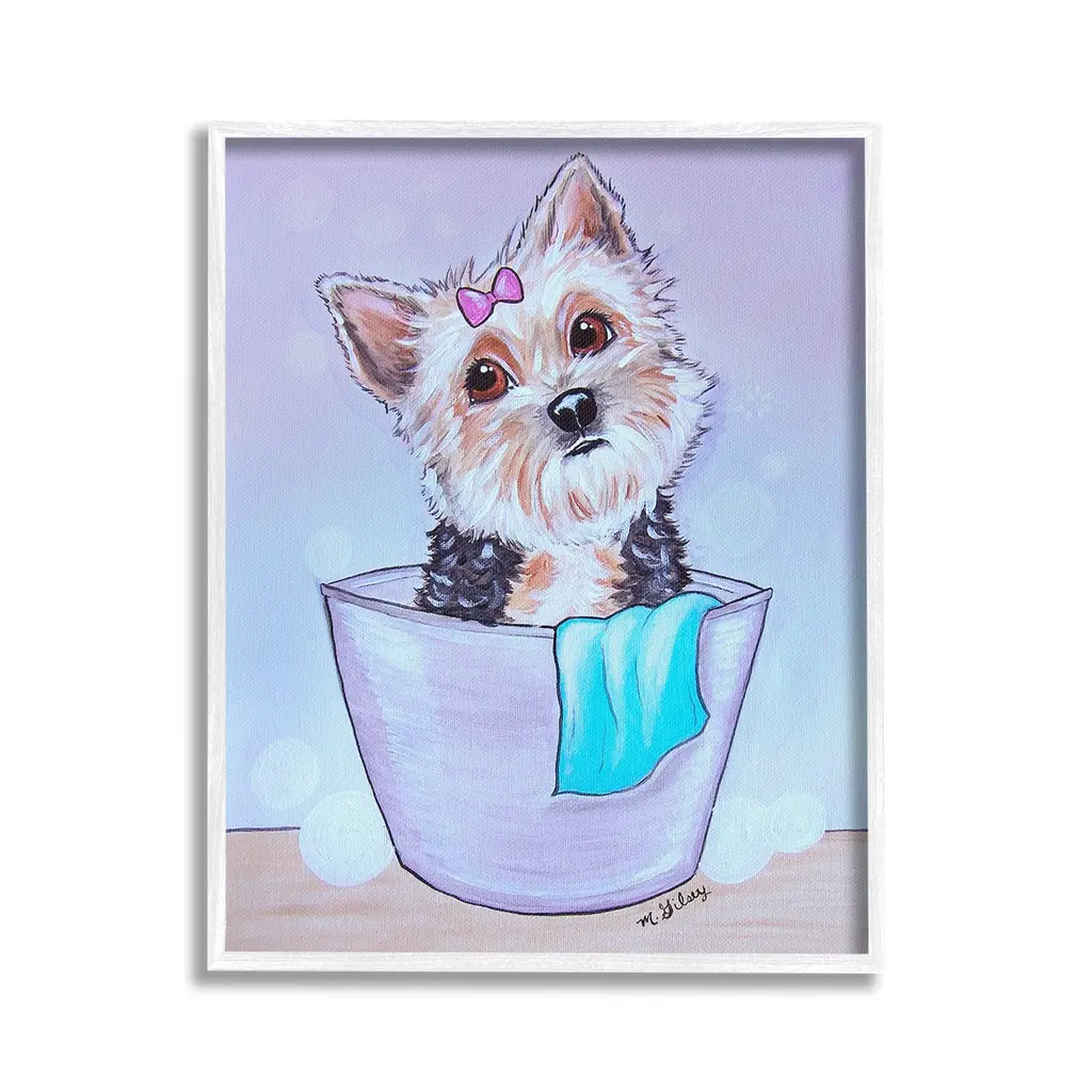 Add dimension to any room with our textured Framed Giclee Artwork. Our framed artwork is securely mounted into a 1.5-inch thick wood grain frame and ready to hang. Frames are available in three alluring styles: black, gray farmhouse and white. In addition, you should check out our oversized options if you want a statement piece. Stupell Wall Art is made in the USA.Features: Dimensions: 11 x 1.5 x 14 FramedFramed Giclee Products are available in the sizes 11"x14", 16"x20" or 24"x30". All Framed Giclee Products have a 1.5" Depth. Wall Art is Ready to Hang with Hardware Free Hanging. No installation required. For Easy Set Up Lean or Layer Artwork on Shelf or Against Wall.Our giclée prints are carefully mounted on a durable MDF backing, and then perfectly finished in a 1.5 inch thick woodgrain frame. Mounted frame colors include black, gray farmhouse and white. Made In USA.Artwork Relates To: Bathroom, Bathtub, Tub, Hygiene, Soap, Bubbles, Dog, PetDesign by Michelle Gilsey