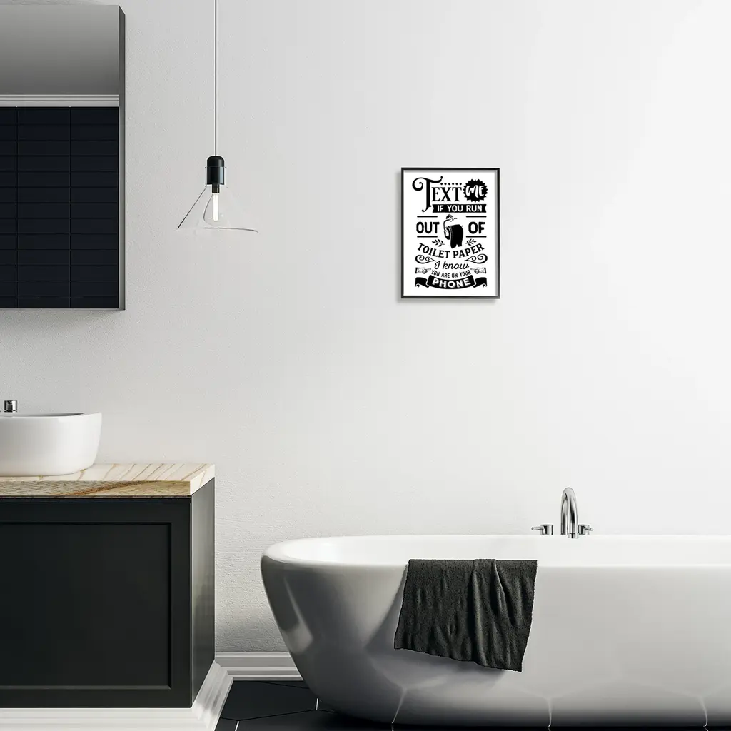 It is time to set up your room with of our fresh new 'Framed Giclee Textured Wall Art' pieces. You may have seen our Wooden or Canvas products, but our framed products are now available in three alluring styles: black, gray farmhouse and white. Our textured artwork will add more depth and dimension to any space. Each piece is mounted with a 1.5 inch thick wood grain frame that is ready to hang! Looking for a statement piece? We have oversized artwork available.Features: Wall Art is Ready to Hang - No Installation or Hardware Needed. For Easy Set Up Lean or Layer Artwork on Shelf or Against Wall.Our giclee prints are carefully mounted on a durable MDF backing, and then perfectly finished in a 1.5 inch thick woodgrain frame. Frame colors include black, gray farmhouse and white. Made In USA.Artwork Relates To: Flyer; Paper; Toilet Paper; BathroomDesign by Lettered and Lined