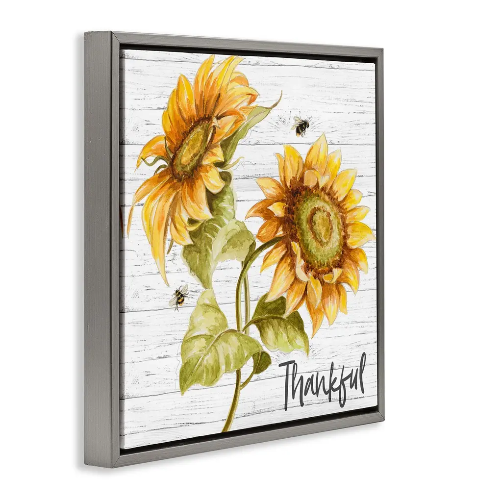 Stupell Thankful Country Sunflowers Framed Floater Canvas Wall Art Design By Patricia Pinto - 18 X 18 - Grey