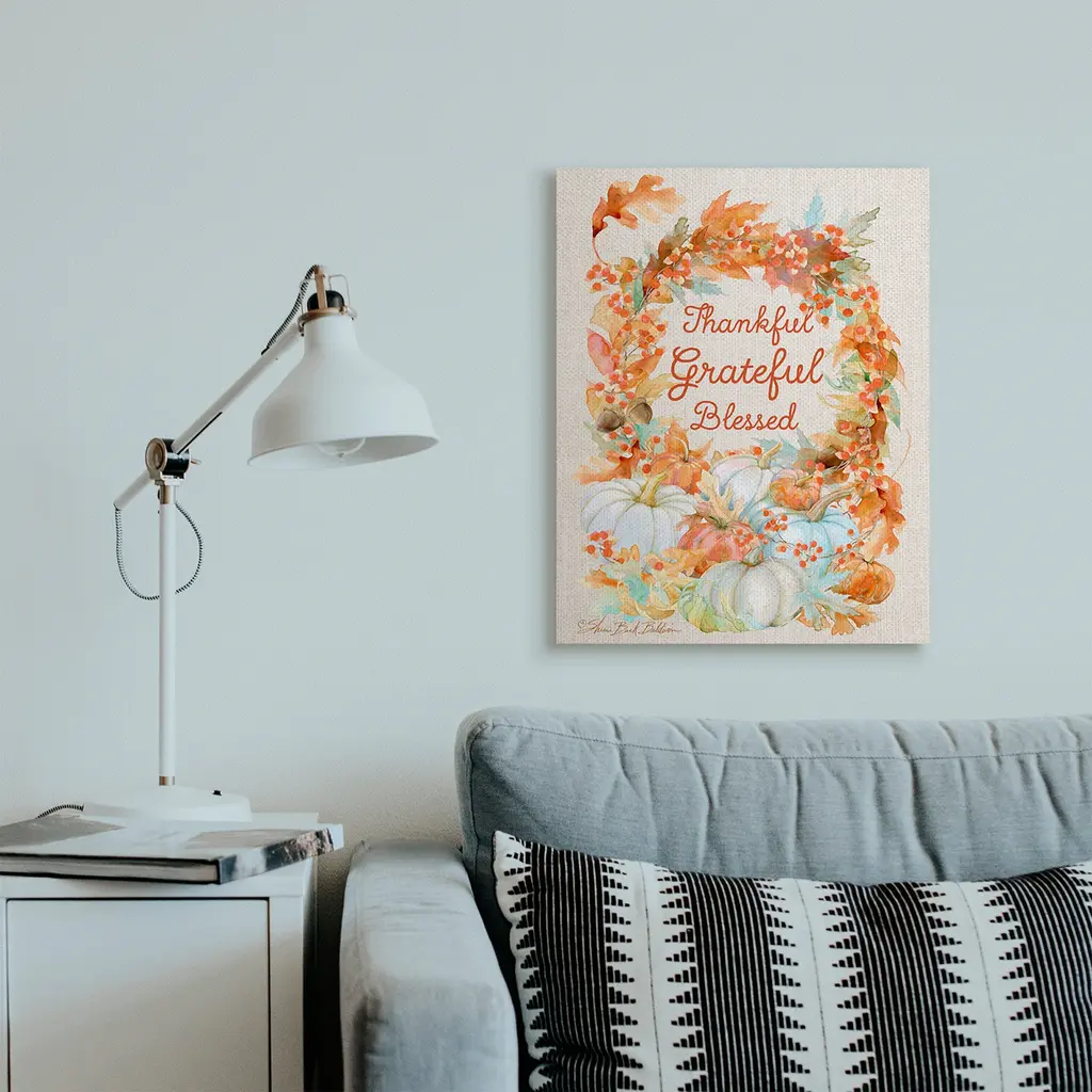 Stupell Thankful Grateful Blessed Text Autumn Harvest Canvas Wall Art - 24 X 30