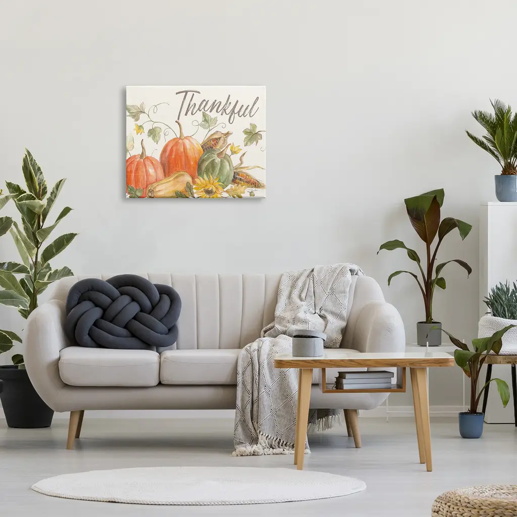 Stupell Thankful Sentiment Autumn Pumpkin Corn Harvest Canvas Wall Art - Orange - 24 X 30