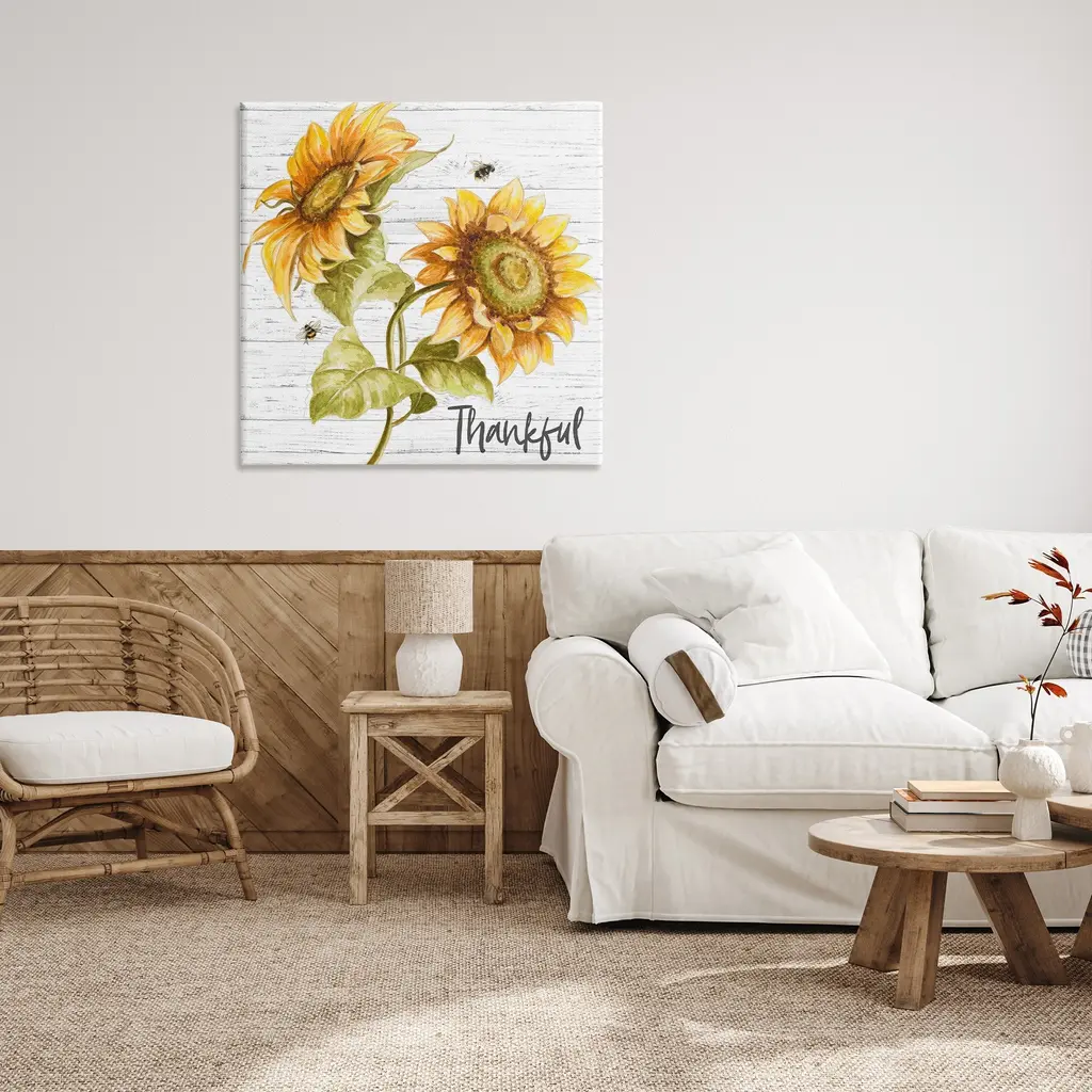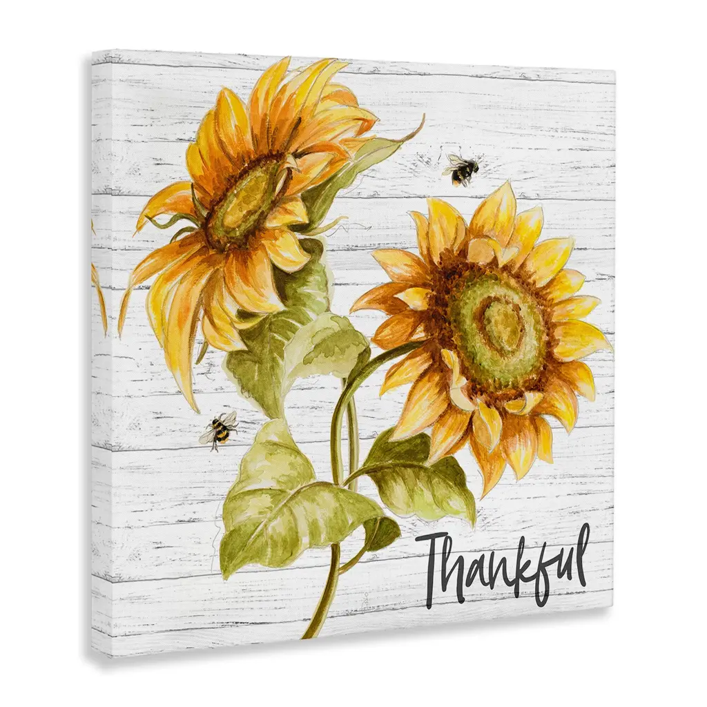 Stupell Thankful Text Country Sunflowers Bumble Bees Canvas Wall Art - 36 X 36