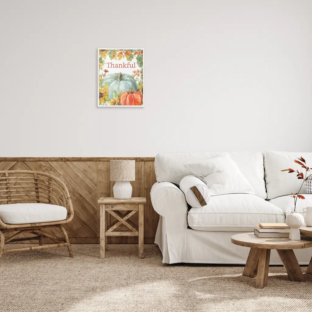 Add dimension to any room with our textured Framed Giclee Artwork. Our framed artwork is securely mounted into a 1.5-inch thick wood grain frame and ready to hang. Frames are available in three alluring styles: black, gray farmhouse and white. In addition, you should check out our oversized options if you want a statement piece. Stupell Wall Art is made in the USA.Features: Dimensions: 11 x 1.5 x 14 FramedFramed Giclee Products are available in the sizes 11"x14", 16"x20" or 24"x30". All Framed Giclee Products have a 1.5" Depth. Wall Art is Ready to Hang with Hardware Free Hanging. No installation required. For Easy Set Up Lean or Layer Artwork on Shelf or Against Wall.Our giclée prints are carefully mounted on a durable MDF backing, and then perfectly finished in a 1.5 inch thick woodgrain frame. Mounted frame colors include black, gray farmhouse and white. Made In USA.Artwork Relates To: Plant, Produce, Pumpkin, Vegetable, Gourd, Countryside, Farm, Harvest, Nature, Fall, Autumn, Flower, Sunflower, ThankfulDesign by Leslie Trimbach