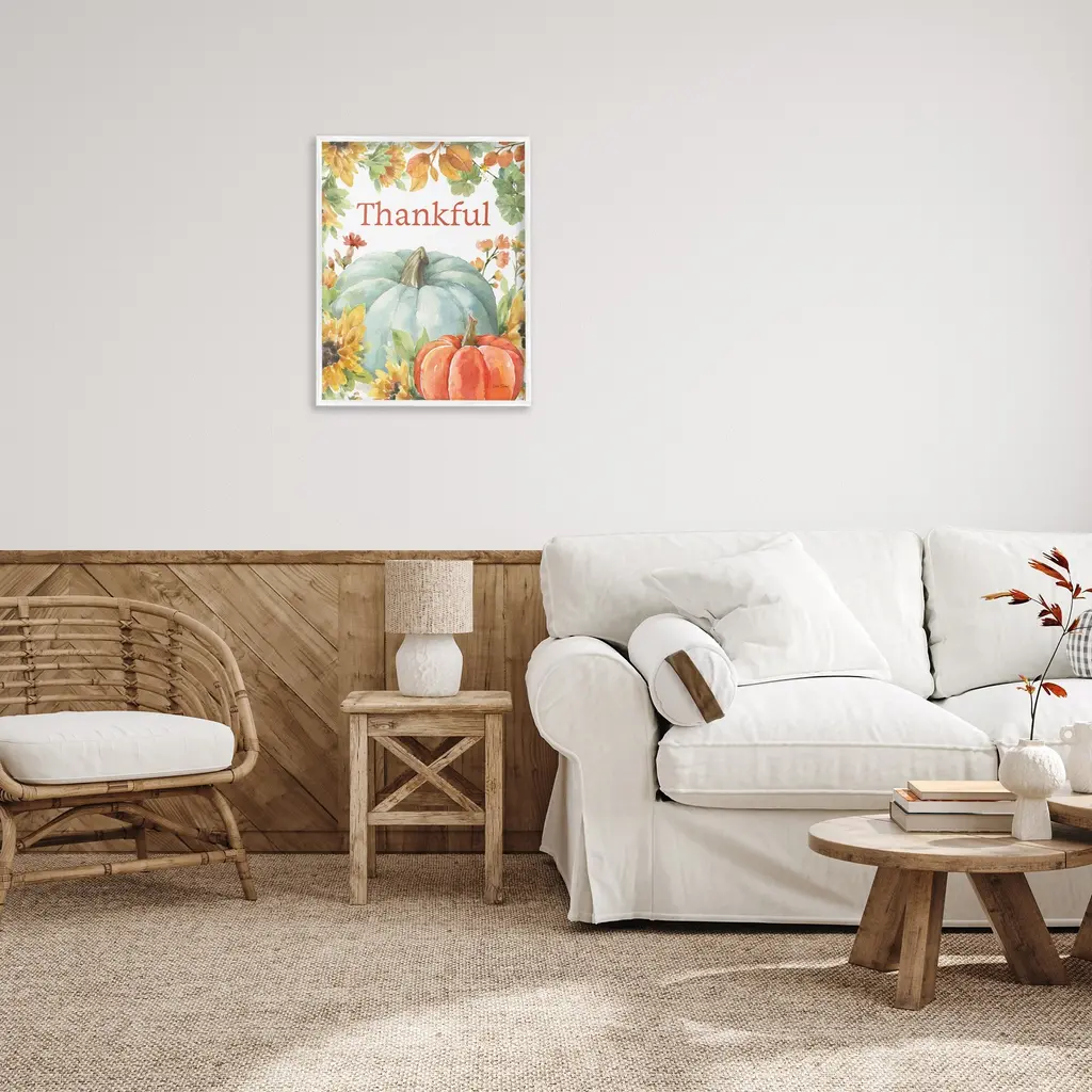 Add dimension to any room with our textured Framed Giclee Artwork. Our framed artwork is securely mounted into a 1.5-inch thick wood grain frame and ready to hang. Frames are available in three alluring styles: black, gray farmhouse and white. In addition, you should check out our oversized options if you want a statement piece. Stupell Wall Art is made in the USA.Features: Dimensions: 11 x 1.5 x 14 FramedFramed Giclee Products are available in the sizes 11"x14", 16"x20" or 24"x30". All Framed Giclee Products have a 1.5" Depth. Wall Art is Ready to Hang with Hardware Free Hanging. No installation required. For Easy Set Up Lean or Layer Artwork on Shelf or Against Wall.Our giclée prints are carefully mounted on a durable MDF backing, and then perfectly finished in a 1.5 inch thick woodgrain frame. Mounted frame colors include black, gray farmhouse and white. Made In USA.Artwork Relates To: Plant, Produce, Pumpkin, Vegetable, Gourd, Countryside, Farm, Harvest, Nature, Fall, Autumn, Flower, Sunflower, ThankfulDesign by Leslie Trimbach