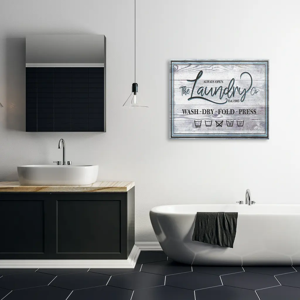 Stupell The Laundry Co Sign Wash Fold Press Icons Canvas Wall Art - Blue - 30 X 40