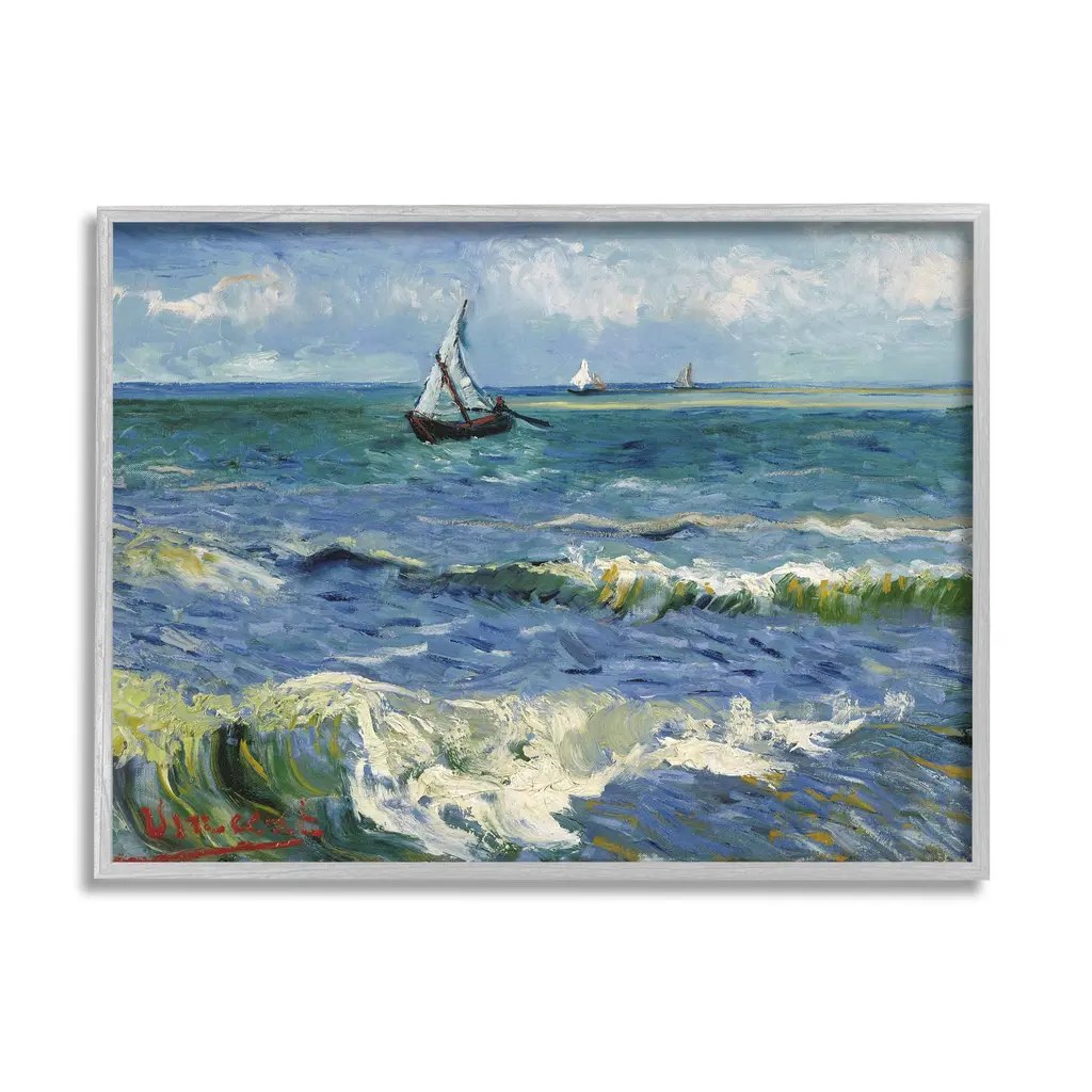 Stupell The Sea At Les Saintes-Maries-De-La-Mer Vincent Van Gogh Painting Floater Frame, Design By One1000paintings - 21 X 17 - Black