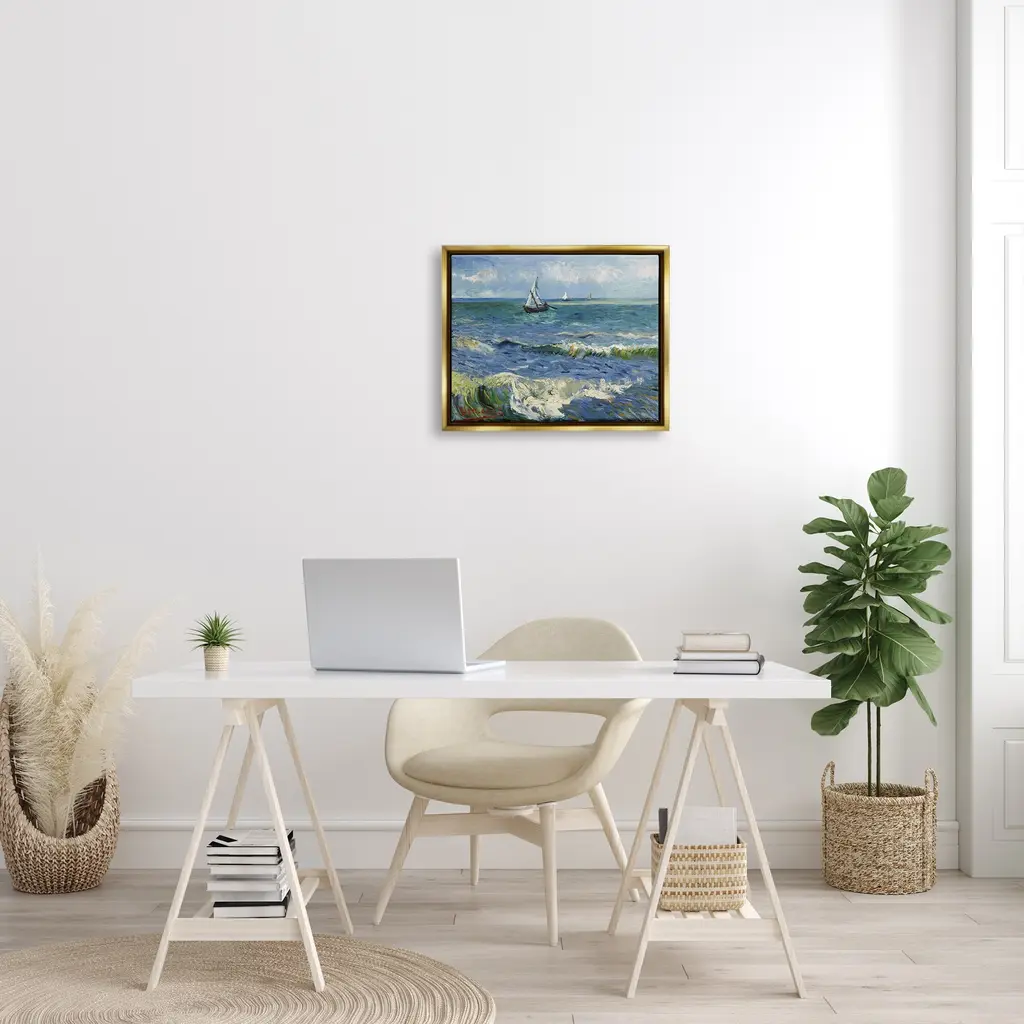 Stupell The Sea At Les Saintes-Maries-De-La-Mer Vincent Van Gogh Painting Floater Frame, Design By One1000paintings - 21 X 17 - Gold