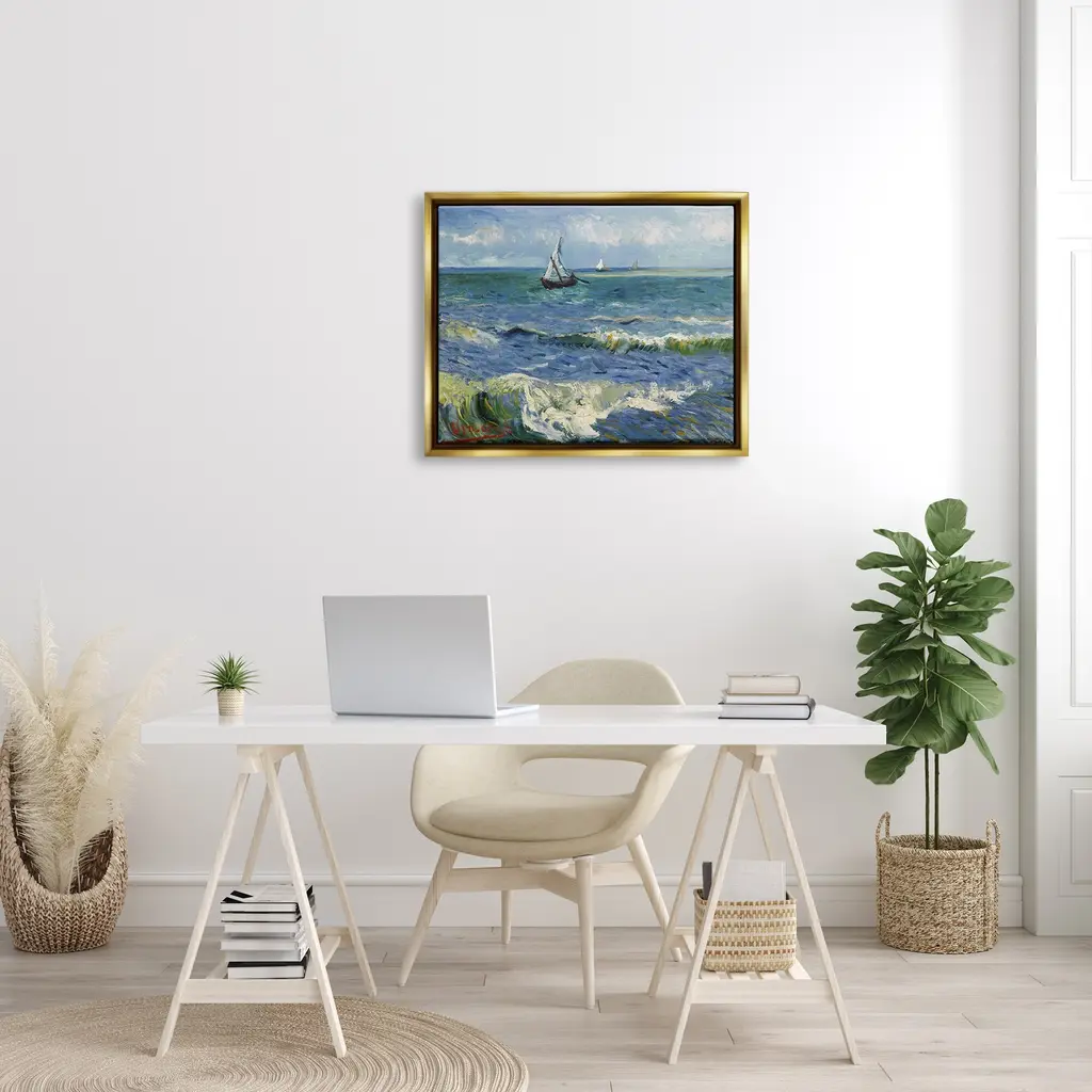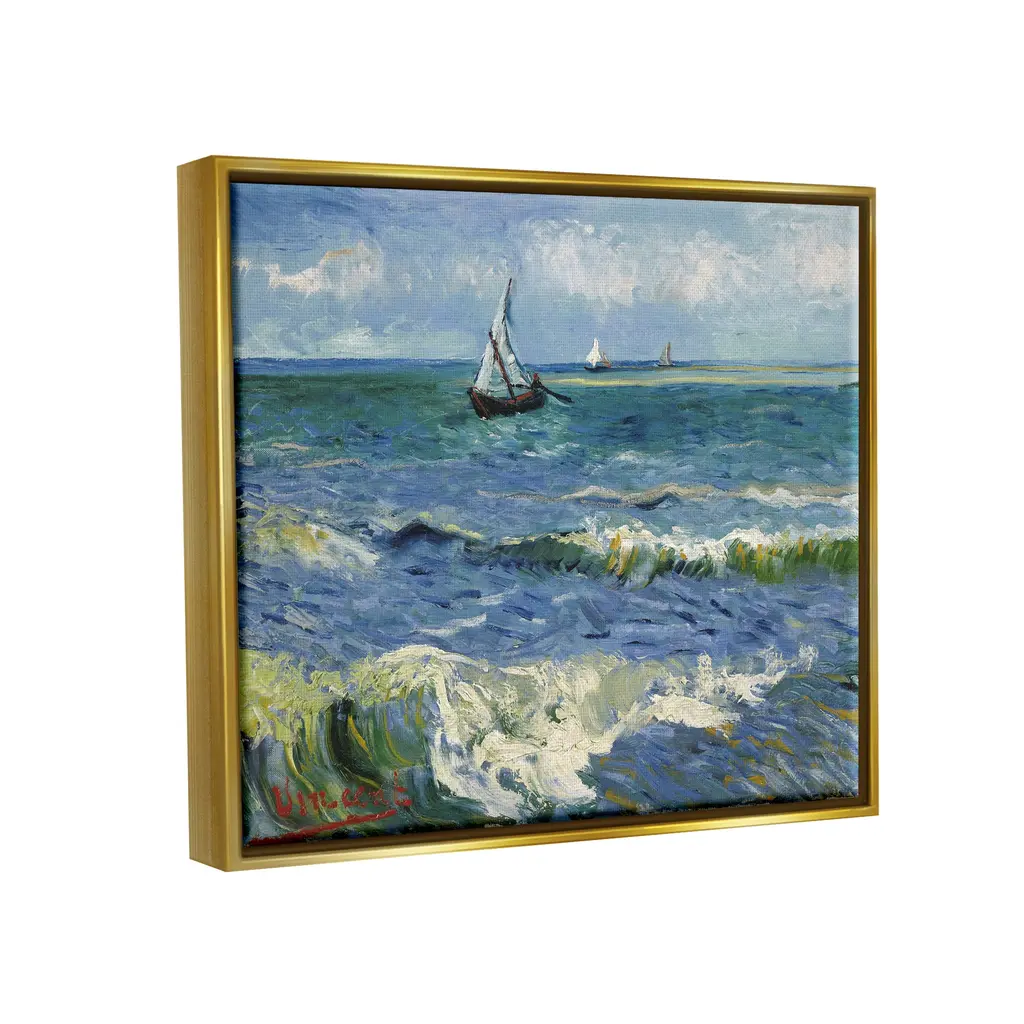 Stupell The Sea At Les Saintes-Maries-De-La-Mer Vincent Van Gogh Painting Floater Frame, Design By One1000paintings - 31 X 25 - Gold