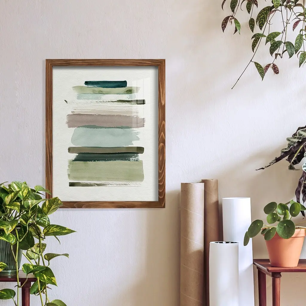 Stupell Thick Line Shape Abstraction Green Brown Striped Layers Framed Wall Art - 11 X 14 - White