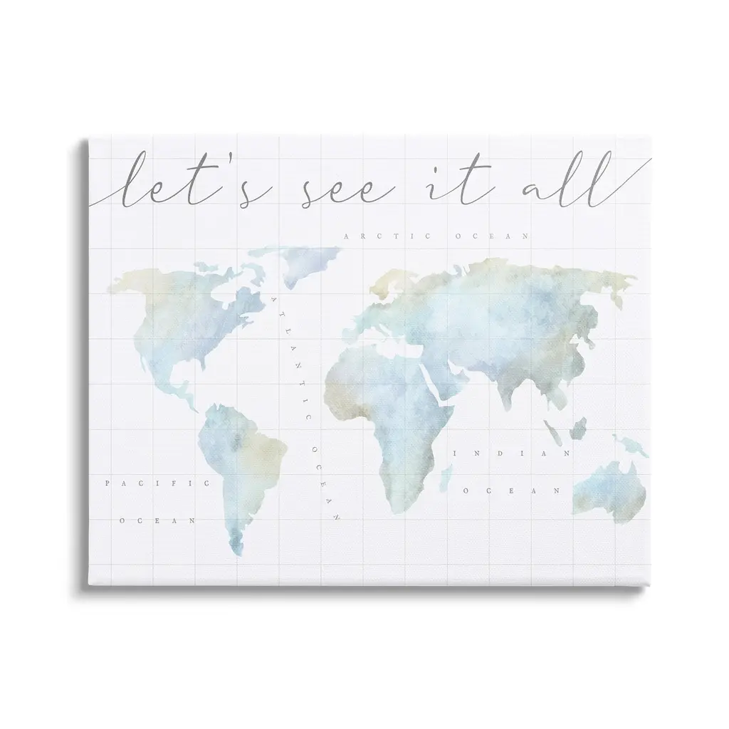 Stupell This Is A Great Big World Phrase Map Of Continents Canvas Wall Art - 36 X 48