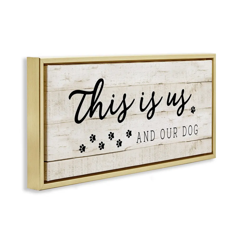 Stupell This Is Us & Our Dog Phrase Framed Floater Canvas Wall Art Design By Cad - 25 X 11 - Gold