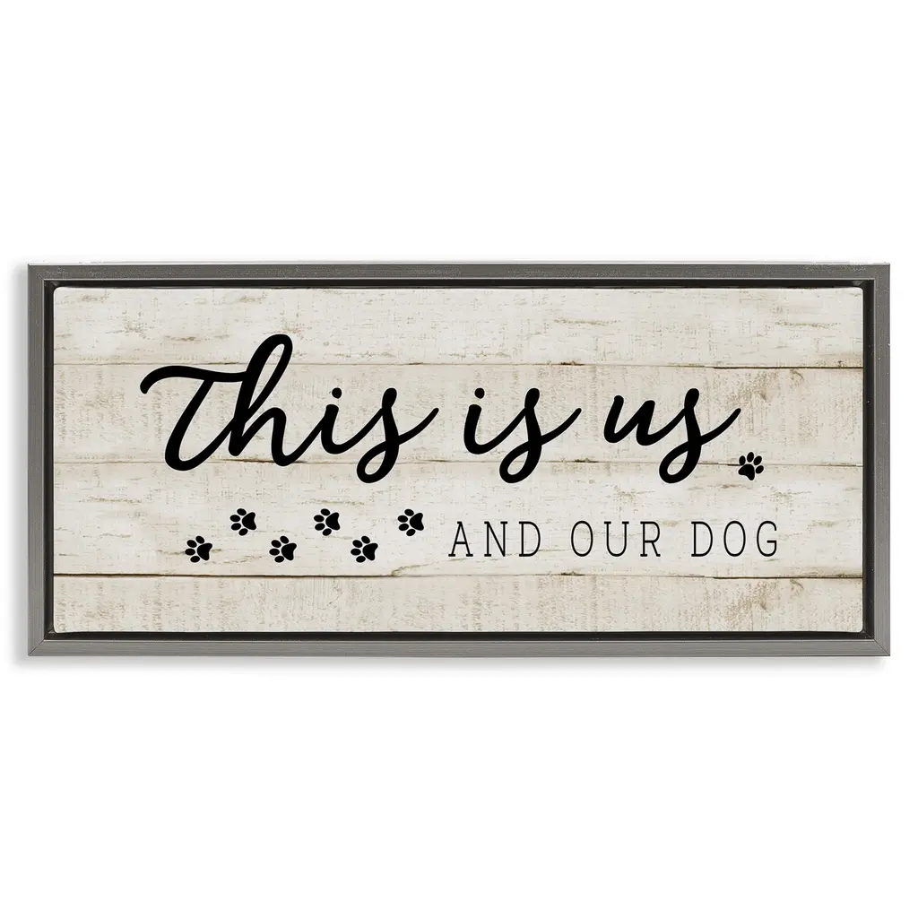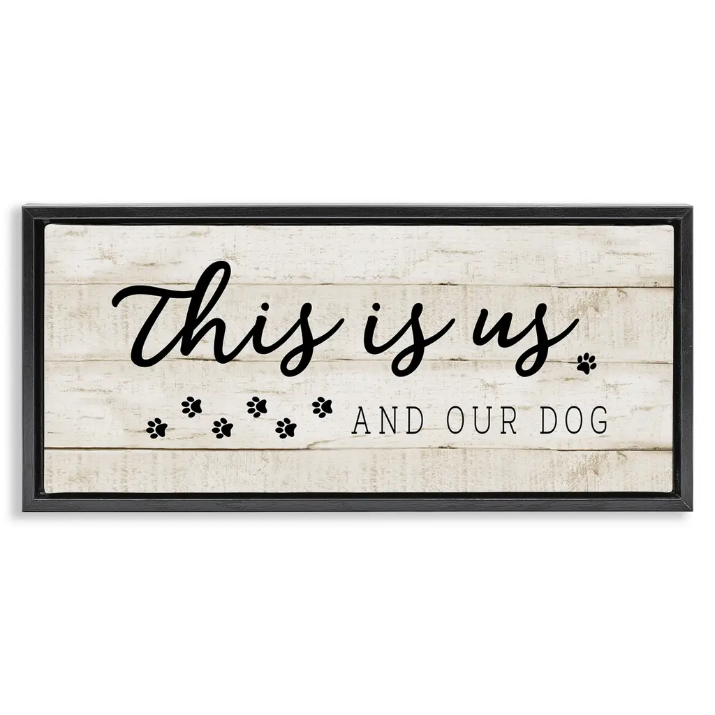 Elevate your home or office to the next level with Stupell Framed Floating Canvas Wall Art. Our premium hand-stretched canvas is mounted securely into a sturdy lightweight frame. The museum-style gap between the wrapped canvas and the box frame gives the illusion of floating artwork. Stupell Wall Art is made in the USA.Features: Dimensions: 25 x 1.7 x 11 Frame, 24 x 1.5 x 10 Canvas ArtFloating Frame Canvas Products are available in sizes 25"x11" and 31"x14". All Floating Frame Canvas Products have a 1.7" Depth.Wall Art is Ready to Hang with Hardware Free Hanging. No Installation required. For Easy Set Up Lean or Layer Artwork on Shelf or Against Wall. Artwork is Permently Fixed into the Frame.Our elevated 1.7" Thick Floating Frame is the perfect complement to our canvas style Wall Art. We use only the highest quality inks in house with industry leading printing solutions. Canvas is hand stretched over a durable wood foundation and then mounted securly into a Modern Box Frame. Made in the USA.Artwork Relates To: Phrase, Rustic, Family, Pet, Animal, Dog, PawsDesign by CAD