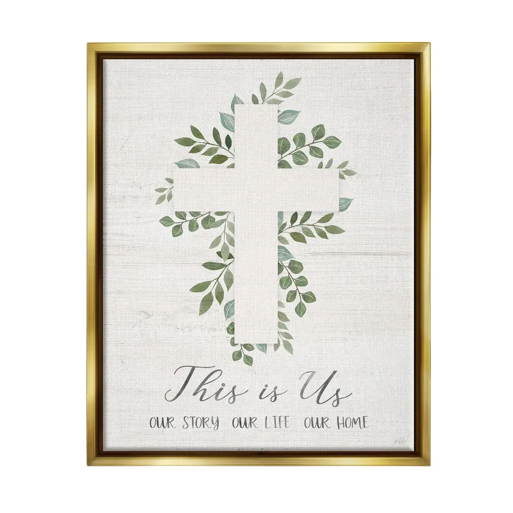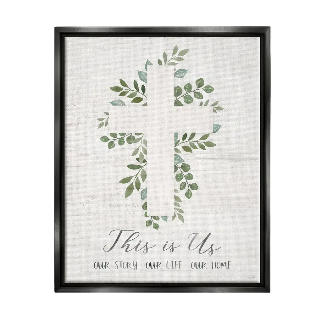 Elevate your home or office to the next level with Stupell Framed Floating Canvas Wall Art. Our premium hand-stretched canvas is mounted securely into a sturdy lightweight frame. The museum-style gap between the wrapped canvas and the box frame gives the illusion of floating artwork. Stupell Wall Art is made in the USA.Features: Dimensions: 17 x 1.7 x 21 Frame, 16 x 1.5 x 20 Canvas ArtFloating Frame Sizes Include Standard: 17 x 1.7 x 21 Oversized: 25 x 1.7 x 31Wall Art is Ready to Hang - No Installation or Hardware Needed. For Easy Set Up Lean or Layer Artwork on Shelf or Against Wall.Our elevated 1.7" Thick Floating Frame is the perfect complement to our canvas style Wall Art. We use only the highest quality inks in house with industry leading printing solutions. Canvas is hand stretched over a durable wood foundation and then mounted securly into a Modern Box Frame. Made in the USA.Artwork Relates To: Cross, Symbol, Herbal, Herbs, Plant, Leaf, Religious, This Is Us, Our Story Our Life Our HomeDesign by Natalie Carpentieri