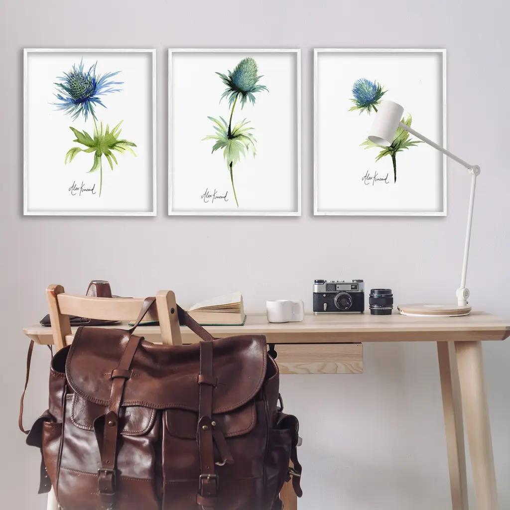 Fill any space in your home or office with our Framed Wall Art Sets. Our framed artwork is securely mounted into a 1.5-inch thick wood grain frame and ready to hang. Frames are available in three alluring styles: black, gray farmhouse and white. Stupell Wall Art is made in the USA.Features: Dimensions: 3 Piece Set, Each Panel is 11 x 1.5 x 14 FramedThree Piece Framed Giclee Sets are availabel as 11"x14", 16"x20", or 24"x30" Panels. All Framed Giclee Products have a 1.5" Depth.Wall Art is Ready to Hang with Hardware Free Hanging. No installation required. For Easy Set Up Lean or Layer Artwork on Shelf or Against Wall.Curated Wall Art Sets make it easy for you complete the theme for any room. Our giclée prints are carefully mounted on a durable MDF backing, and then perfectly finished in a 1.5 inch thick woodgrain frame. Mounted frame colors include black, gray farmhouse and white. Made In USA.Artwork Relates To: Flower, Plant, Anther, Floral, Petal, Botanical, Leaf, Minimal, Study, ThistleDesign by Alexandria Gilbert Kincaid