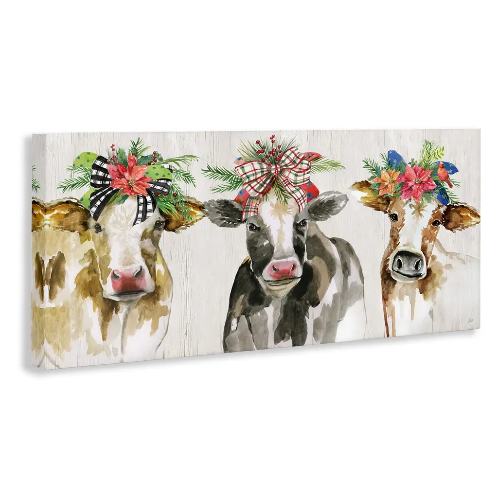 Stupell Three Cows Seasonal Floral Crowns Canvas Wall Art By Nan - 24 X 10