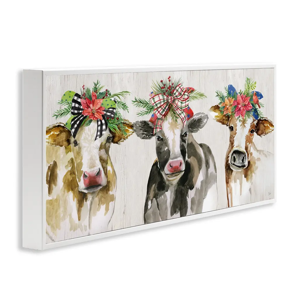 Stupell Three Cows Seasonal Floral Crowns Framed Giclee Art By Nan - 24 X 10 - White