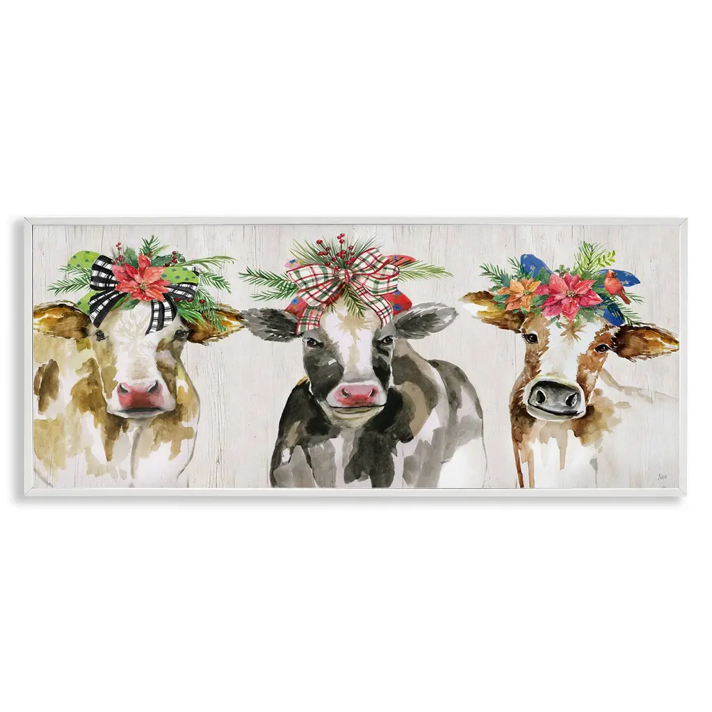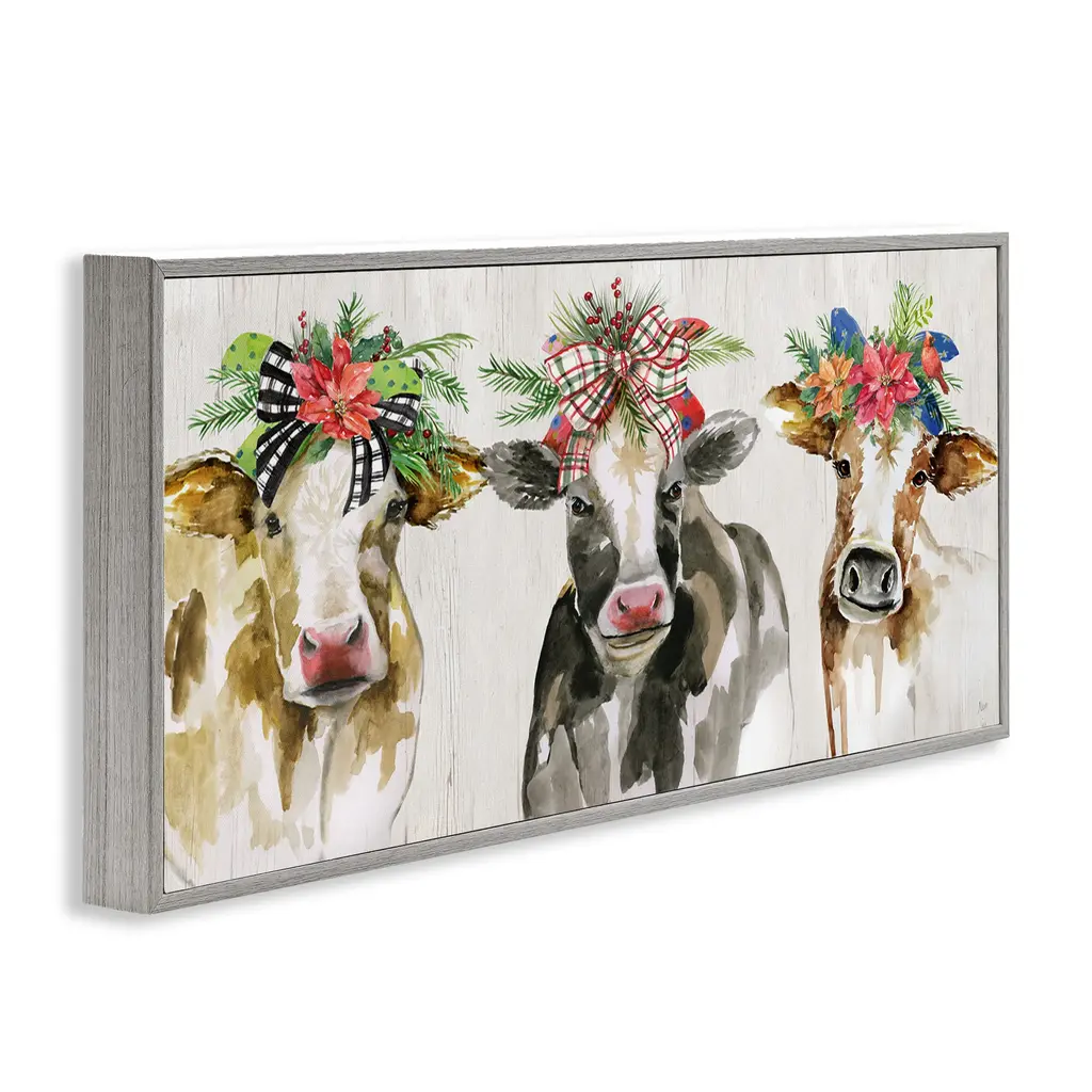Stupell Three Cows Seasonal Floral Crowns Framed Giclee Art By Nan - 30 X 13 - Grey